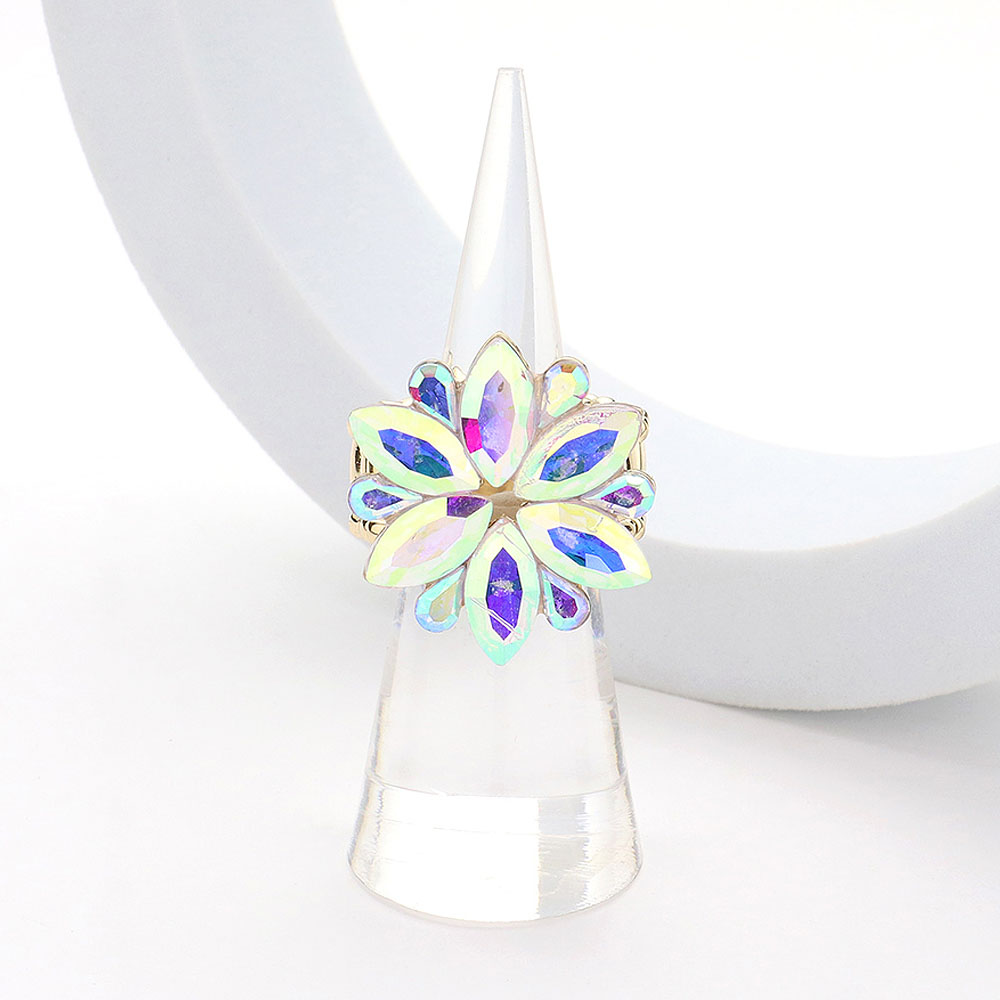 Marquise Glass Stone Cluster Flower Stretch Ring