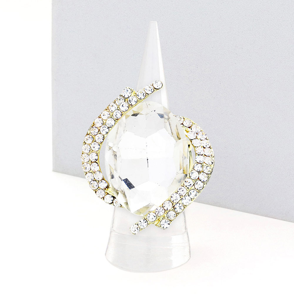 Teardrop Stone Embellished Round Chandelier Dangle Evening Earrings