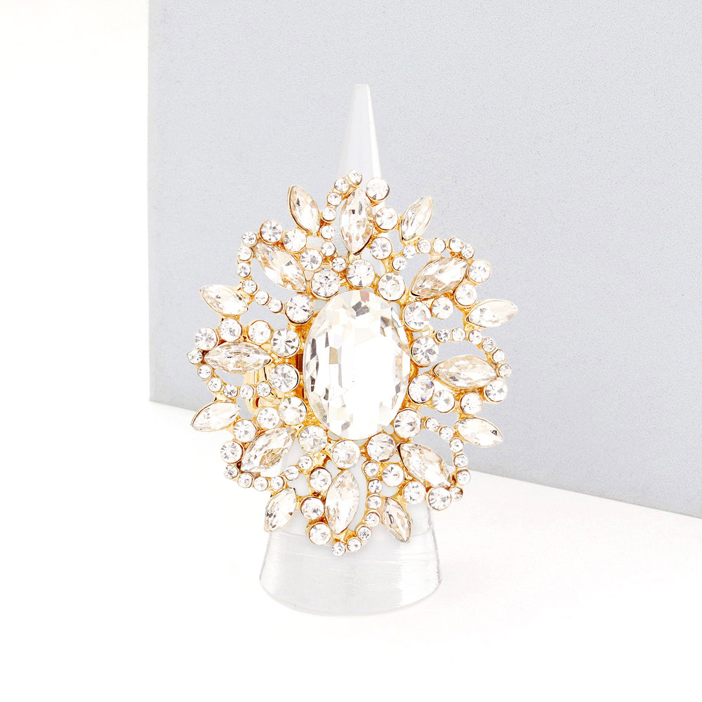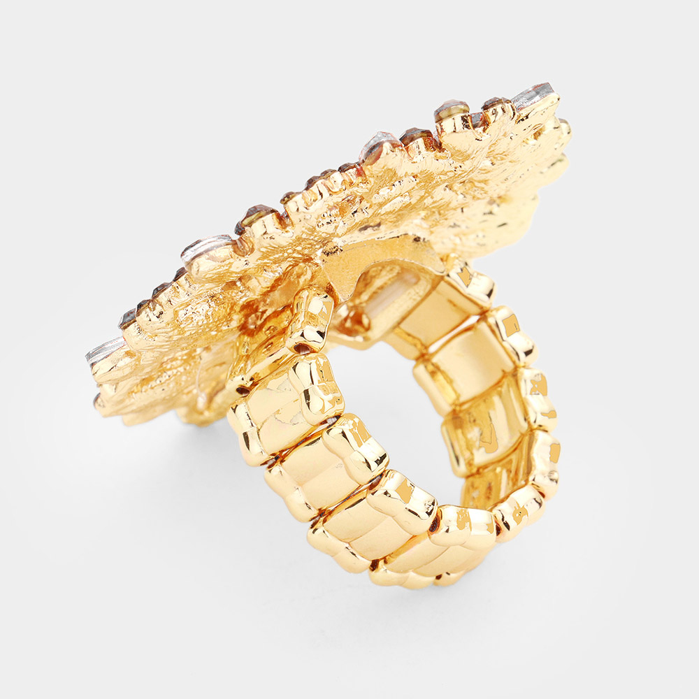 Rhinestone Embellished Metal Leaf Cluster Stretch Ring
