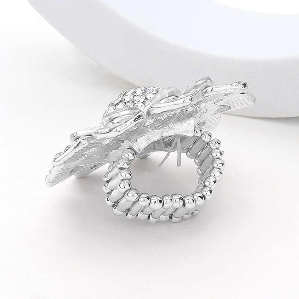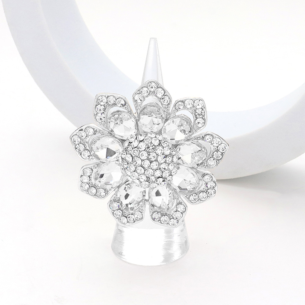 Oval Glass Stone Embellished Rhinestone Paved Flower Stretch Ring