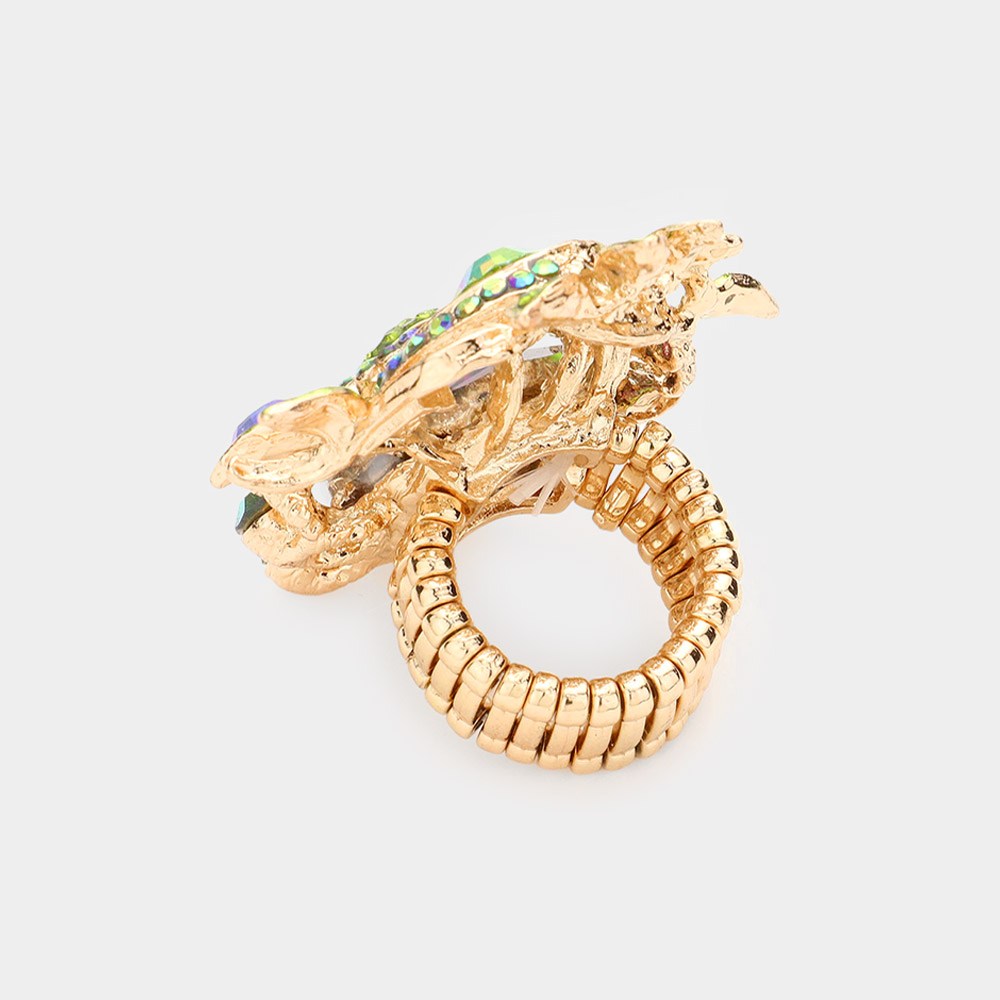 Oval Stone Accented Leaf Cluster Stretch Ring