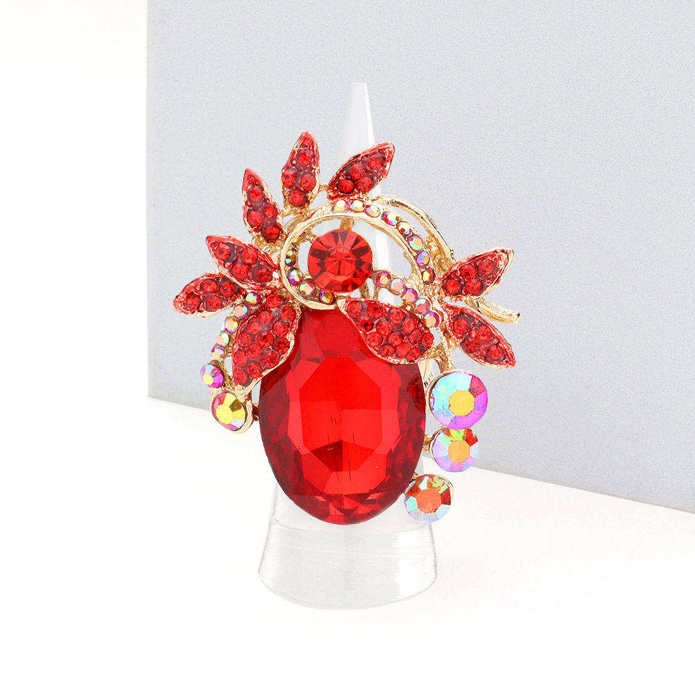 Teardrop Crystal Stone Accented Flower Pin Brooch