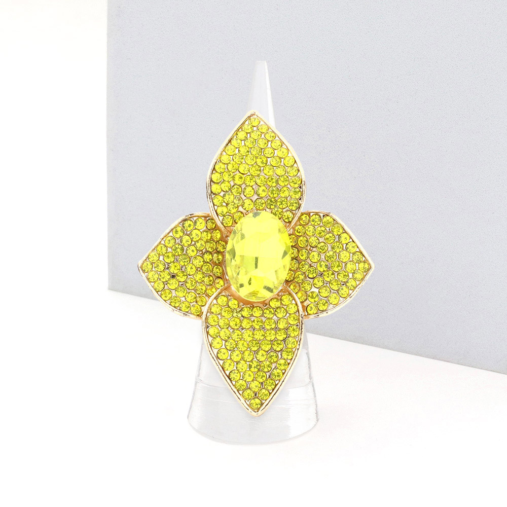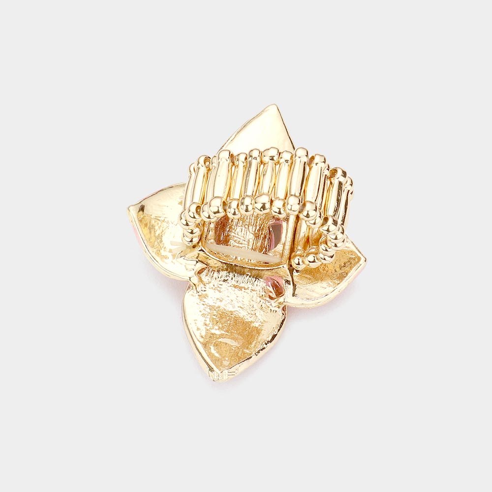 Oval Stone Centered Quatrefoil Petal Stretch Ring