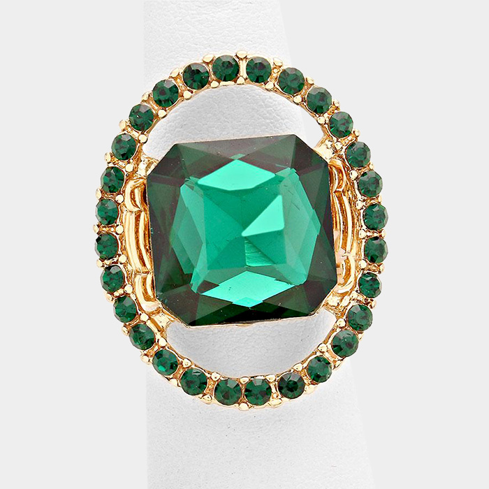 Pave trim glass crystal stretch ring