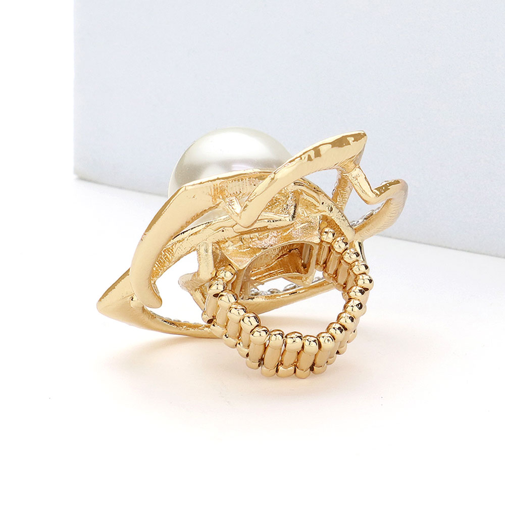 Round Stone Centered Rhinestone Flower Stretch Ring