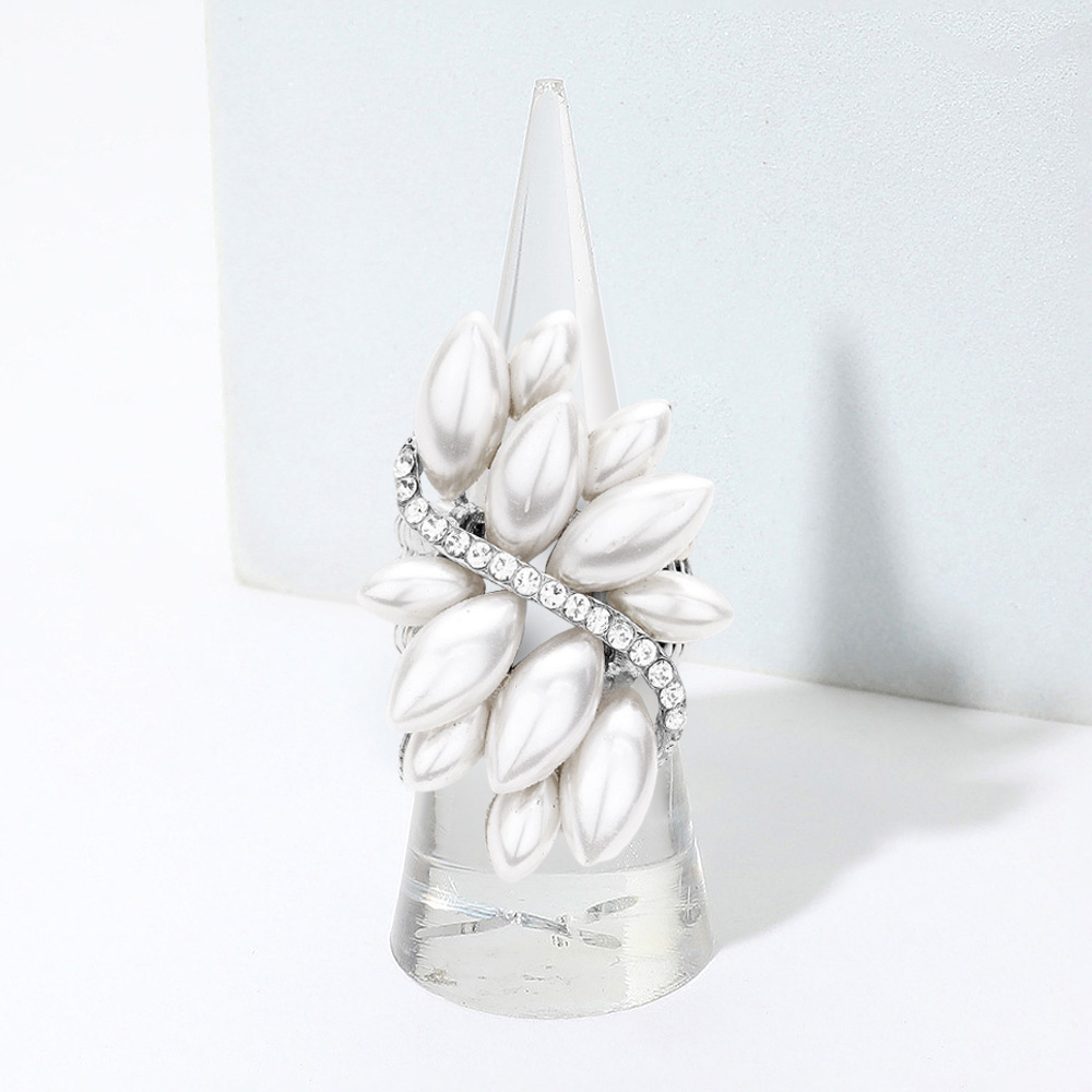Details • Size : 1" X 1.5" • Stretchable • Shine bright with a statement cocktail ring designed in a striking pearl leaf motif. Featuring multi-faceted stones and dazzling sparkle, this glamorous accessory is perfect for parties, special occasions, or elevating everyday outfits with bold elegance.