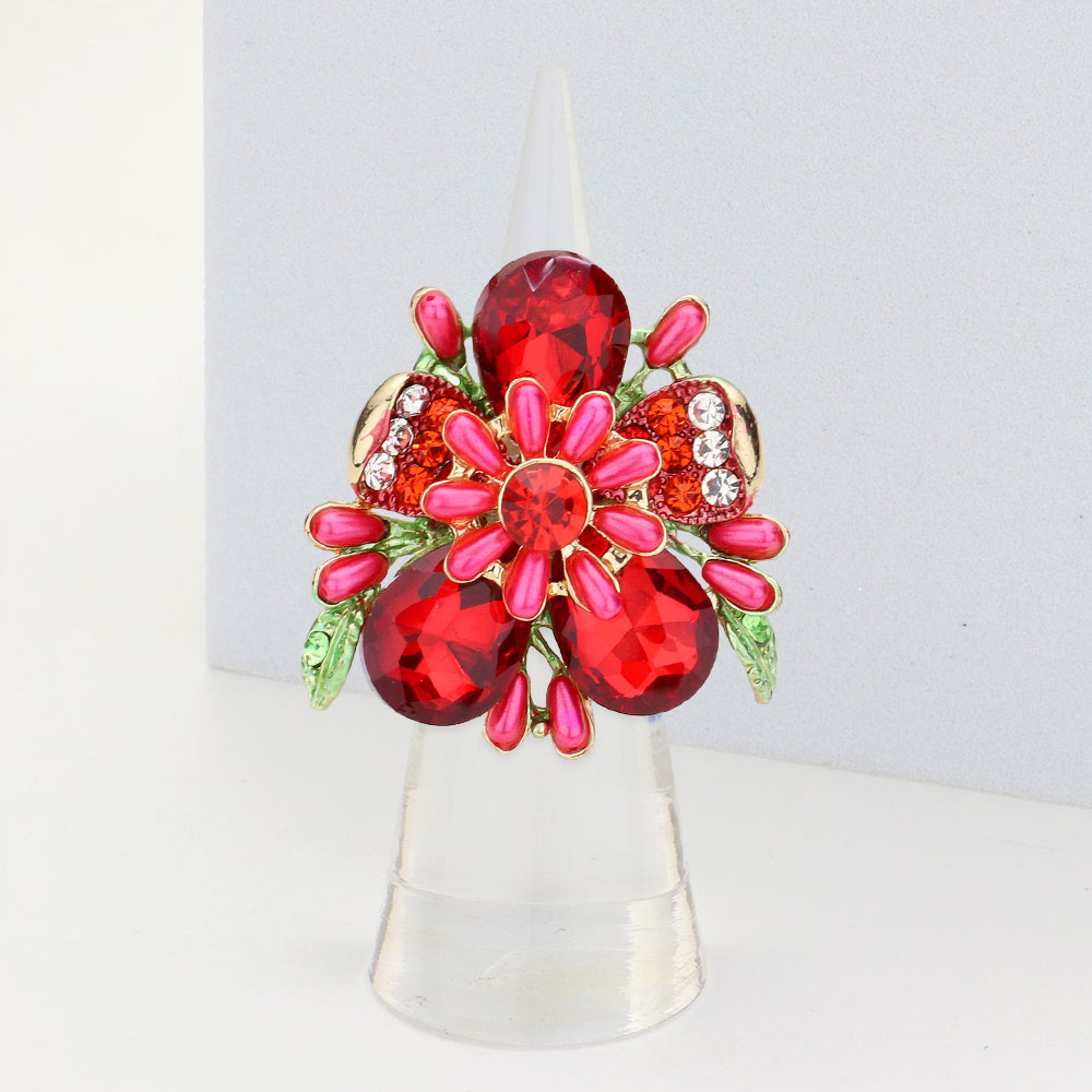 Pearl Embellished Teardrop Stone Accented Flower Stretch Ring