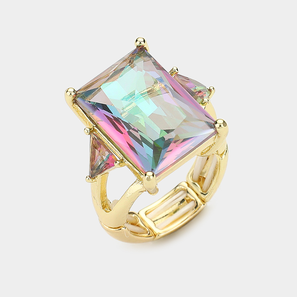Emerald Cut Stone Cluster Pointed Stainless Steel Paperclip Chain Layered Necklace