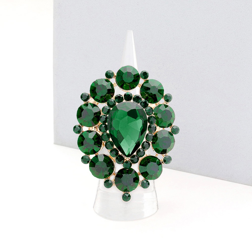 • Turn heads with this oversized statement ring featuring a teardrop center stone surrounded by clustered round accents. Its bold, glamorous design adds instant sparkle to evening wear, parties, or special events, making it a must-have accessory for fashion-forward jewelry lovers.
