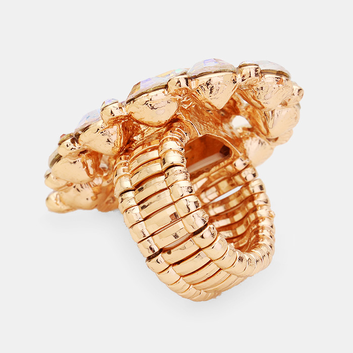 Rhinestone Crystal Cluster Teardrop Stretch Ring