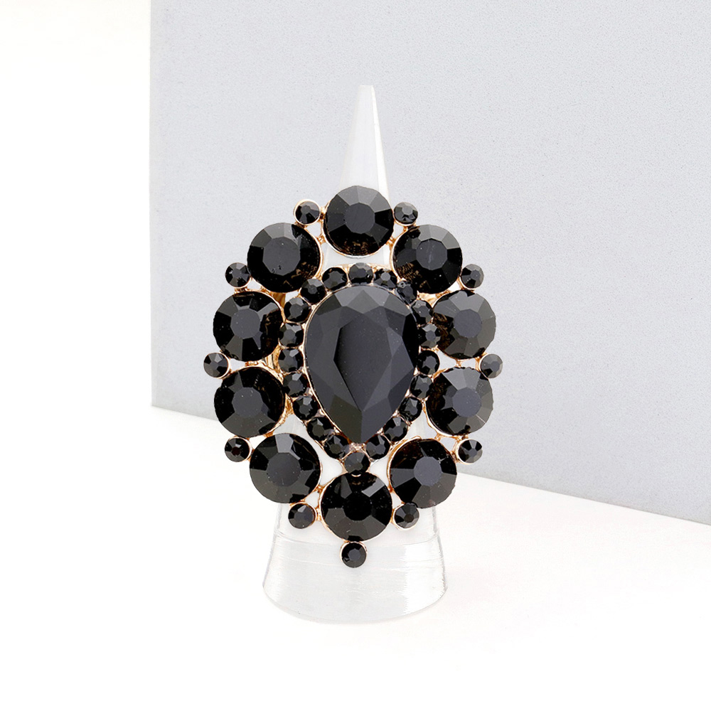 • Turn heads with this oversized statement ring featuring a teardrop center stone surrounded by clustered round accents. Its bold, glamorous design adds instant sparkle to evening wear, parties, or special events, making it a must-have accessory for fashion-forward jewelry lovers.
