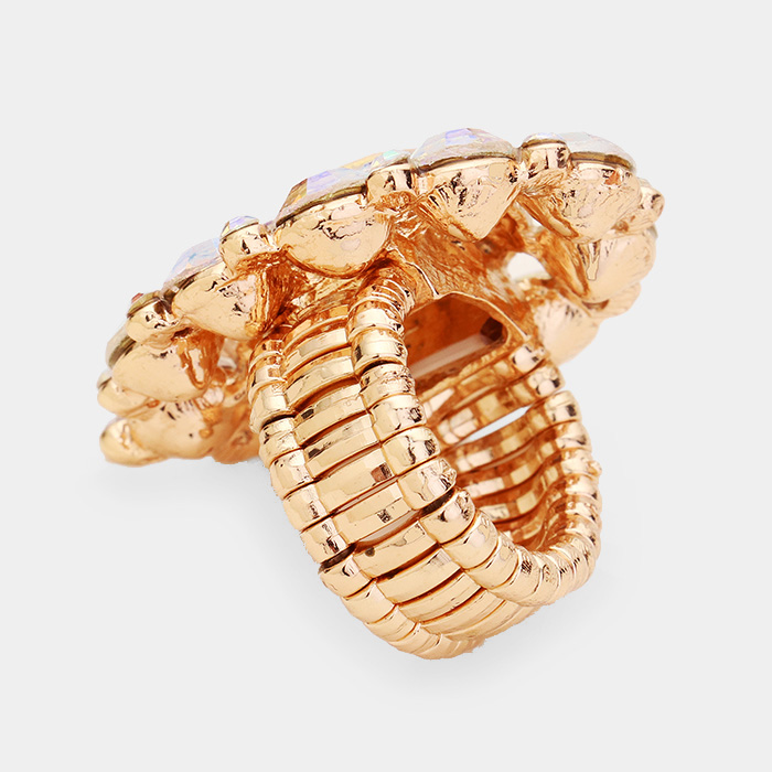 Rhinestone Crystal Cluster Teardrop Stretch Ring