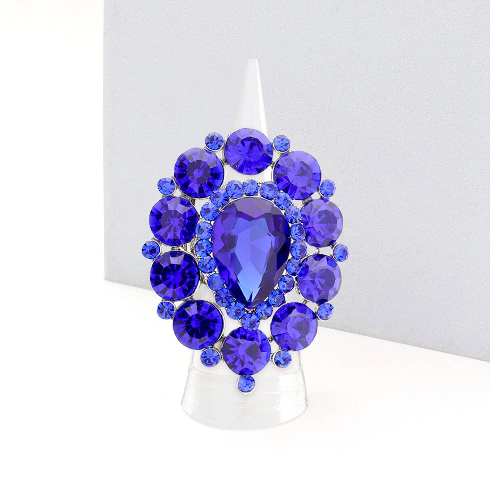 Details • Size : 1.25" X 1.75" • Stretchable • Turn heads with this oversized statement ring featuring a teardrop center stone surrounded by clustered round accents. Its bold, glamorous design adds instant sparkle to evening wear, parties, or special events, making it a must-have accessory for fashion-forward jewelry lovers.