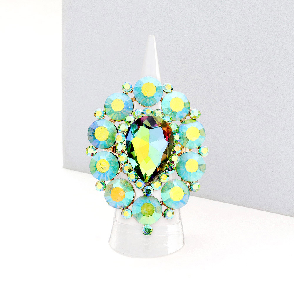 Details • Size : 1.25" X 1.75" • Stretchable • Turn heads with this oversized statement ring featuring a teardrop center stone surrounded by clustered round accents. Its bold, glamorous design adds instant sparkle to evening wear, parties, or special events, making it a must-have accessory for fashion-forward jewelry lovers.