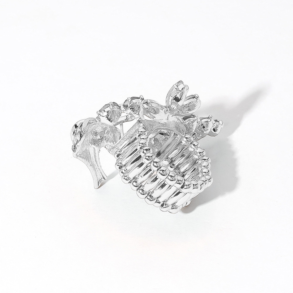Rhinestone Embellished Flower High Heel Pointed Stretch Ring