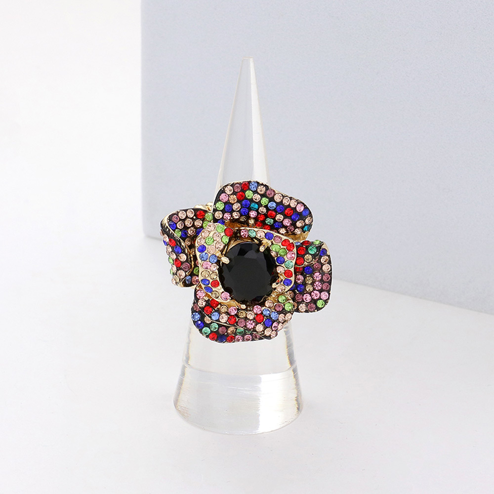 Rectangle Stone Cluster Western Metal Flower Link Stretch Bracelet