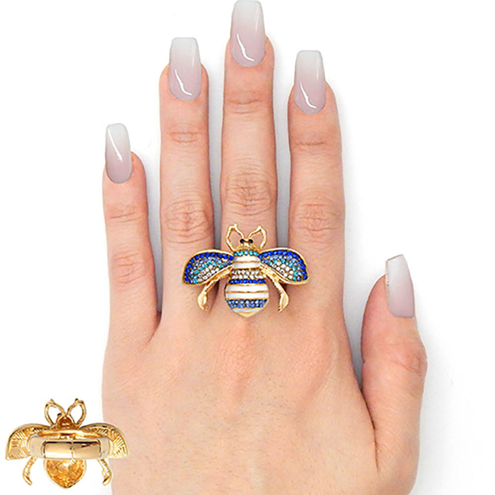 Rhinestone Embellished Honey Bee Stretch Ring