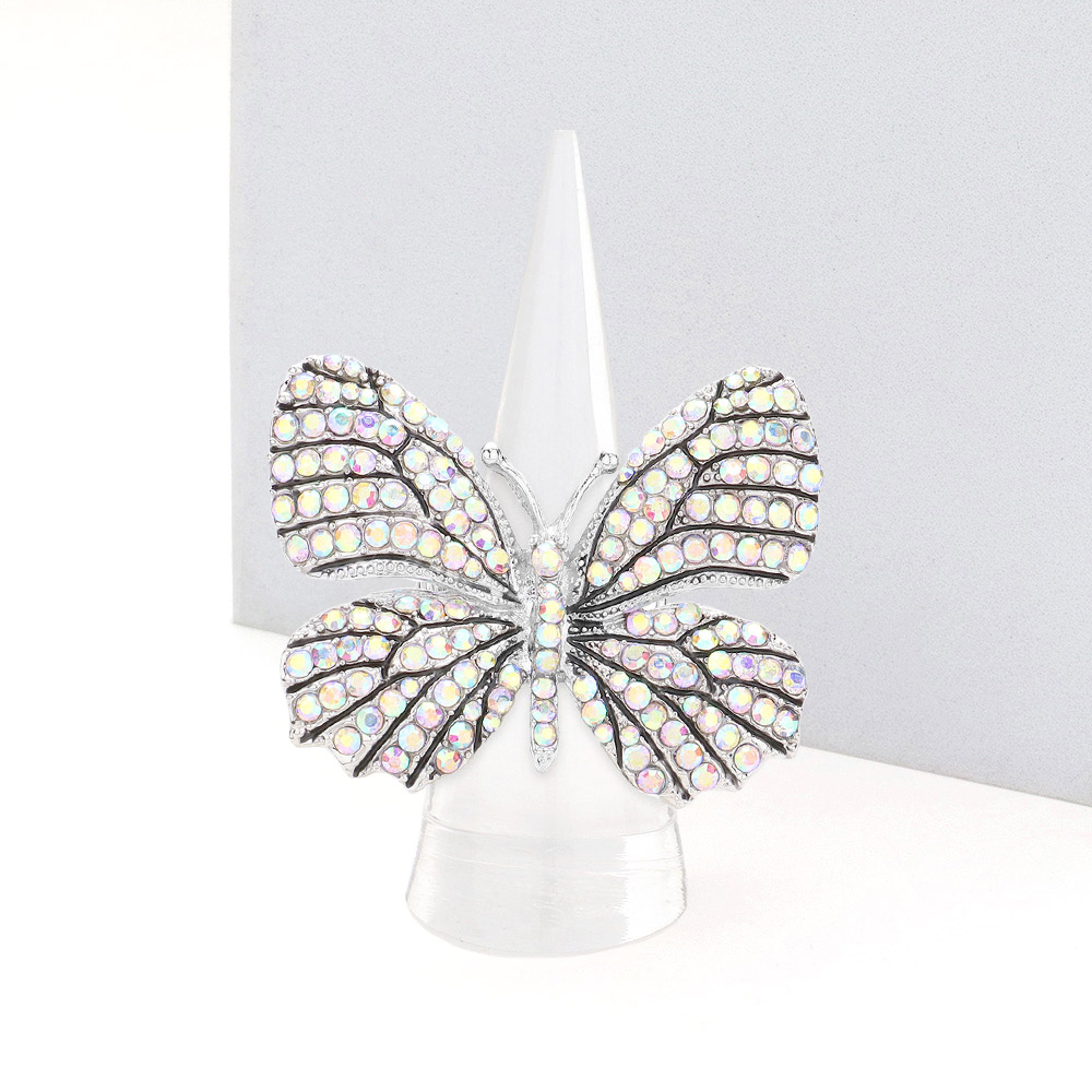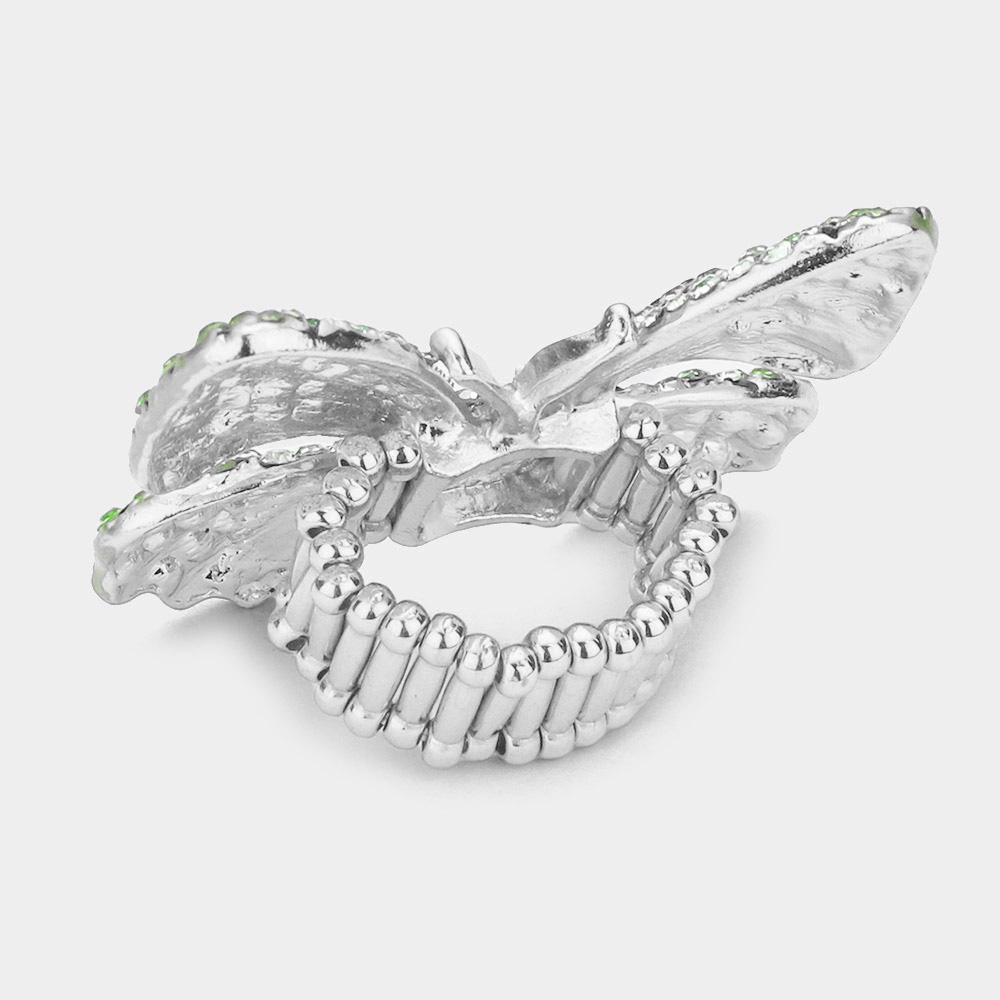 Rhinestone Embellished Metal Butterfly Stretch Ring