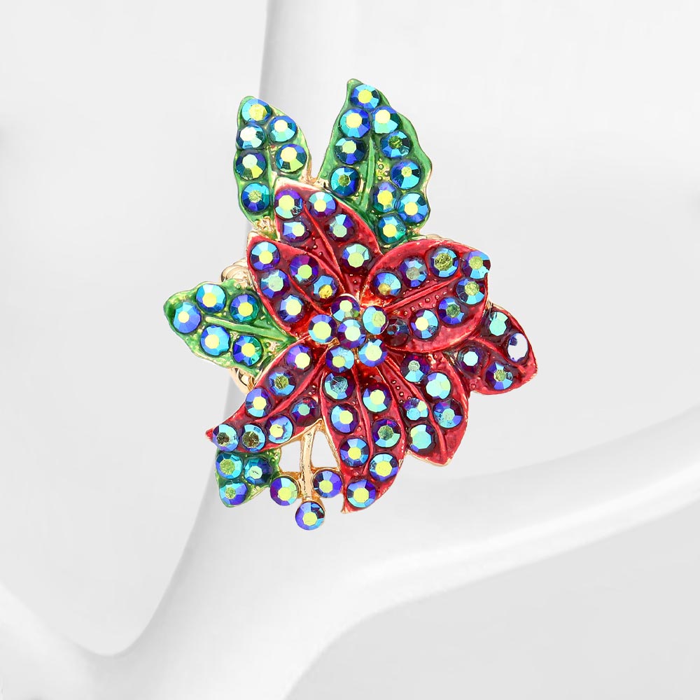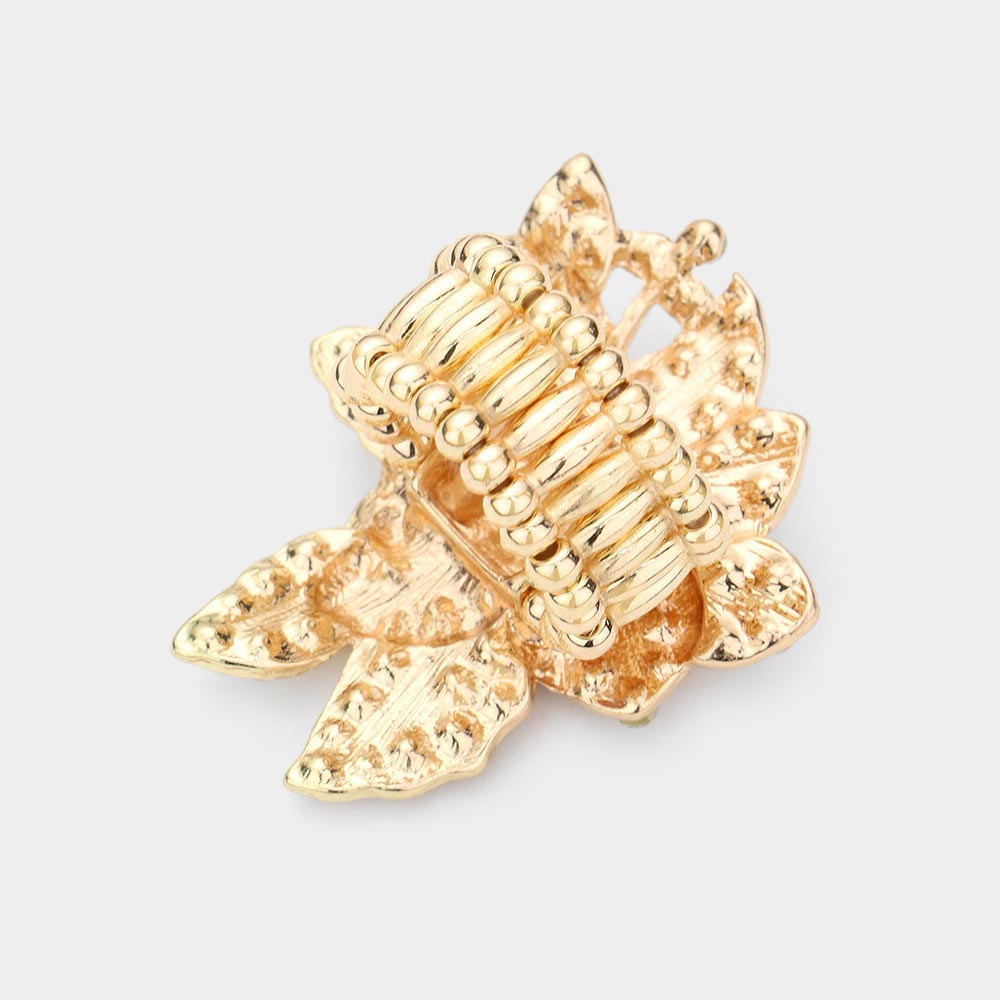 Rhinestone Embellished Metal Leaf Cluster Stretch Ring
