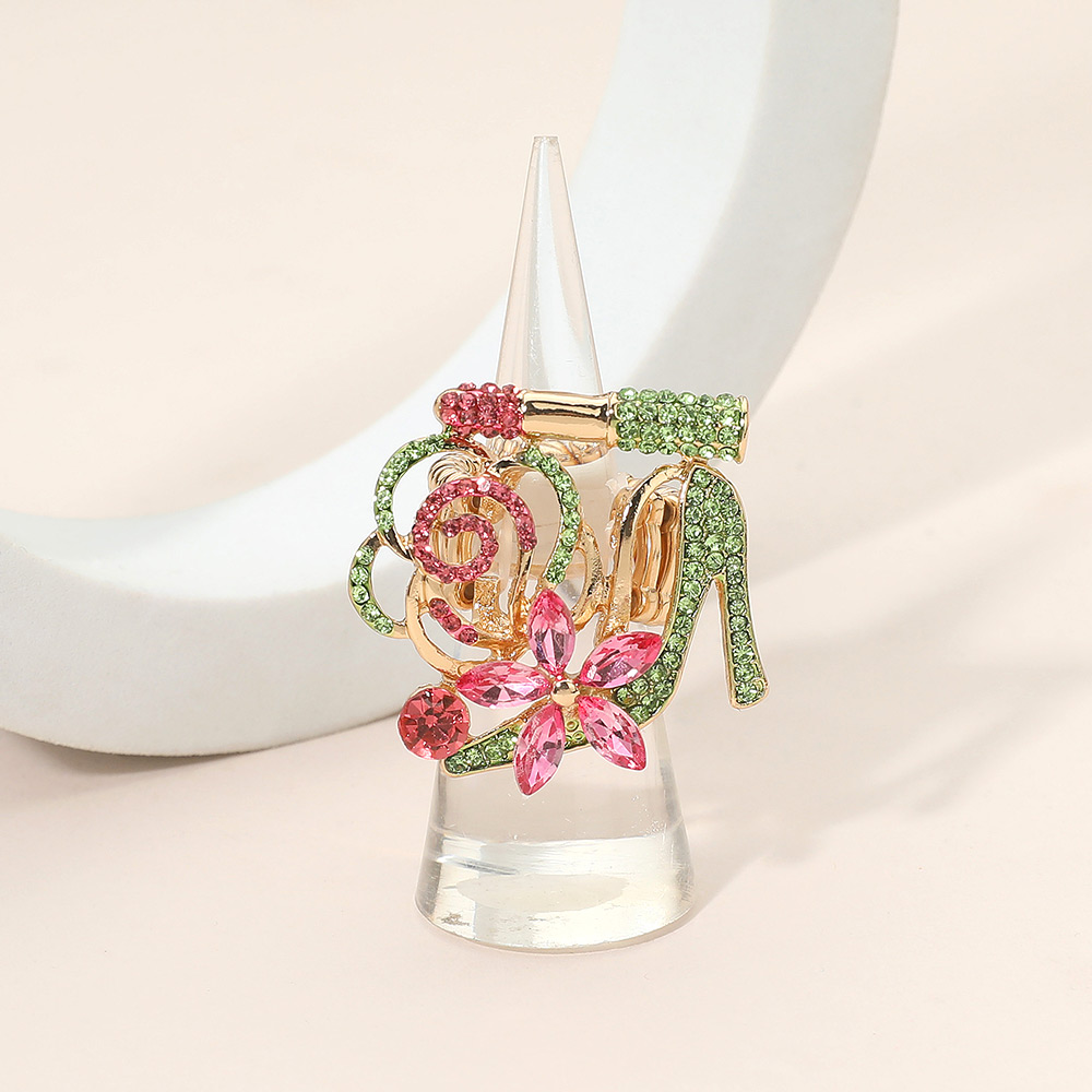Rhinestone Pave High Heel Flower Lipstick Stretch Ring Rhinestone Pave High Heel Flower Lipstick Stretch Ring