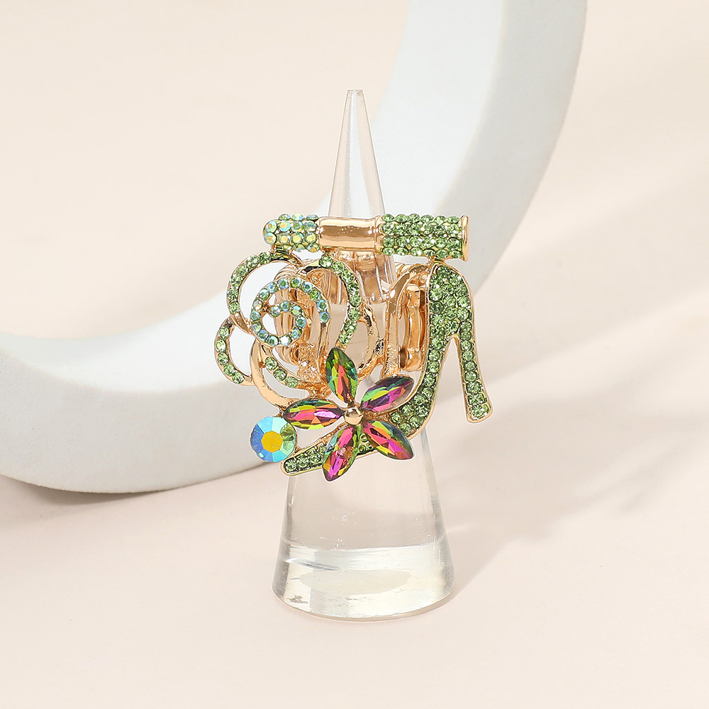 Rhinestone Embellished Flower Accent Glam High Heel Lipstick Pin Brooch