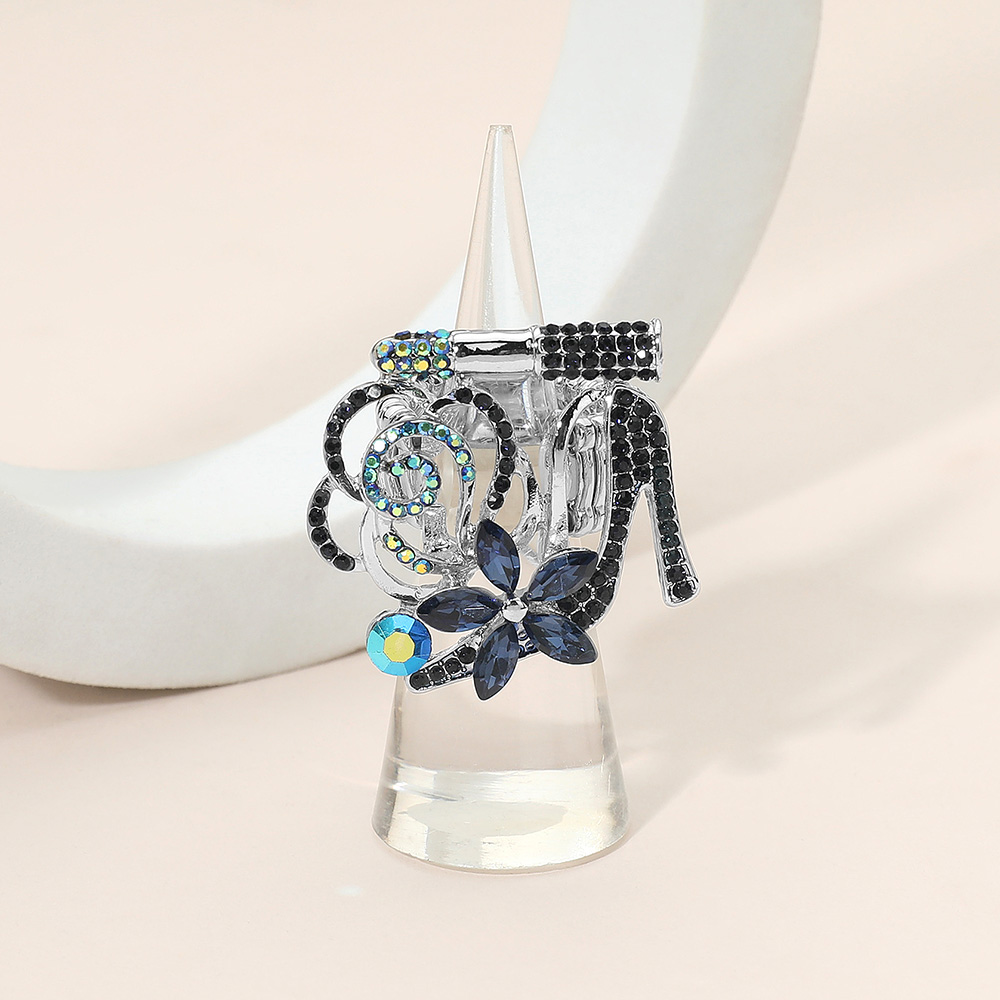 Rhinestone Embellished Flower Accent Glam High Heel Lipstick Pin Brooch
