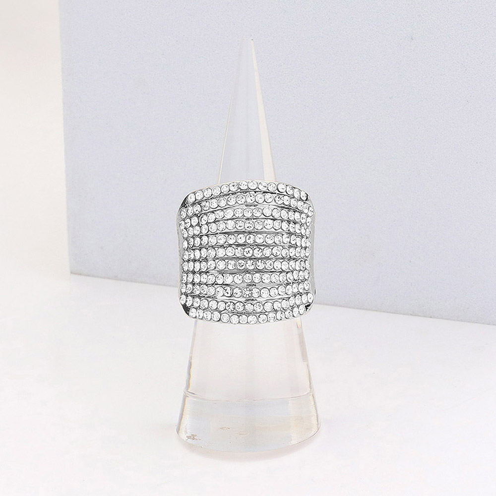 Rhinestone Pave Multi Row Stretch Ring