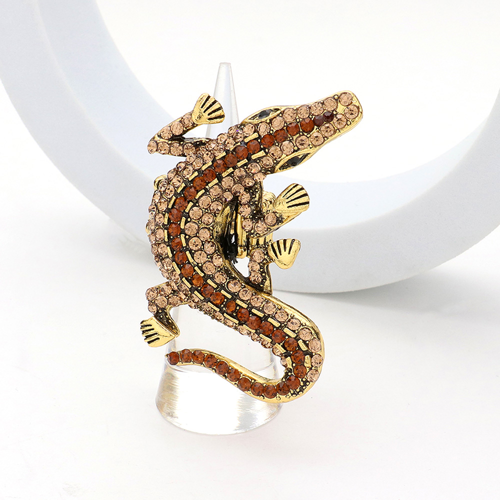 Rhinestone Paved Alligator Pointed Stretch Ring