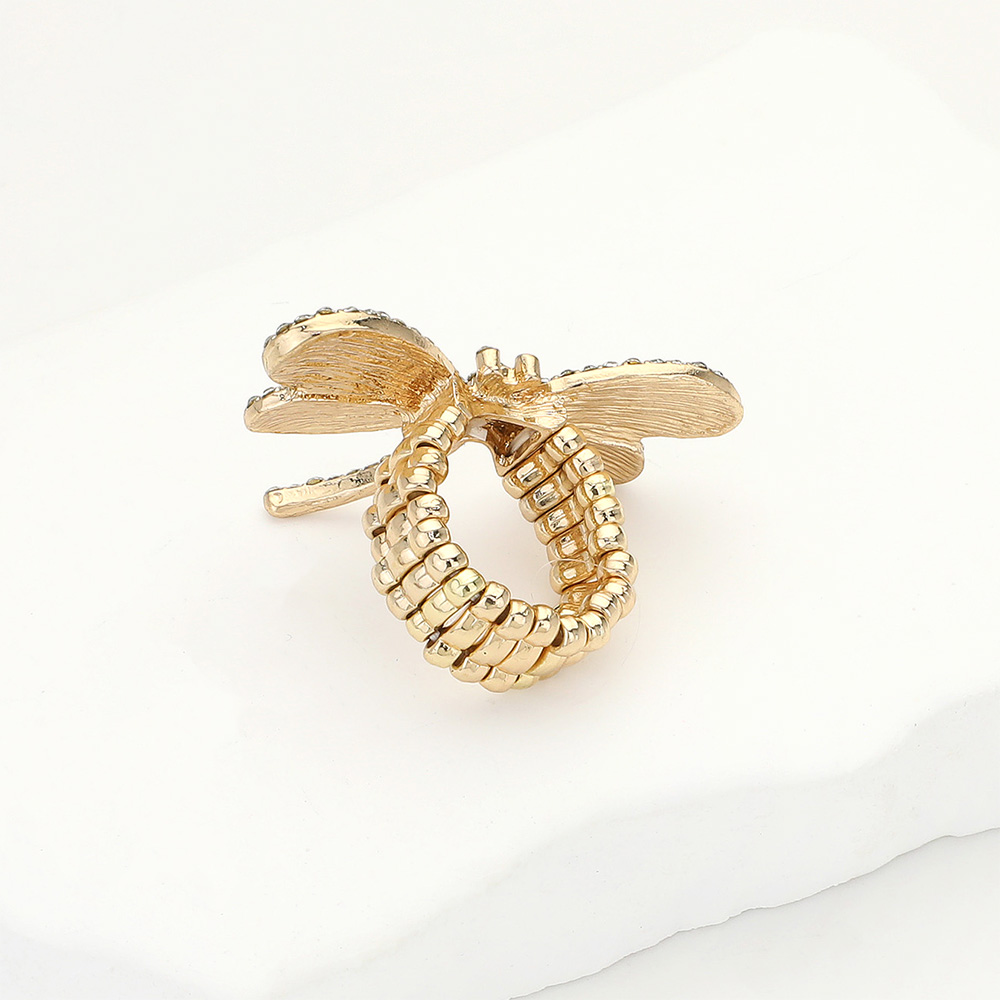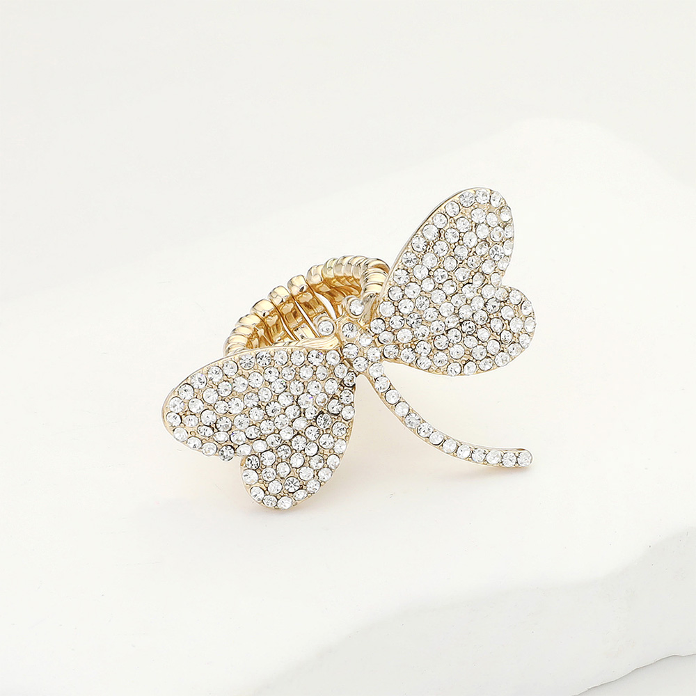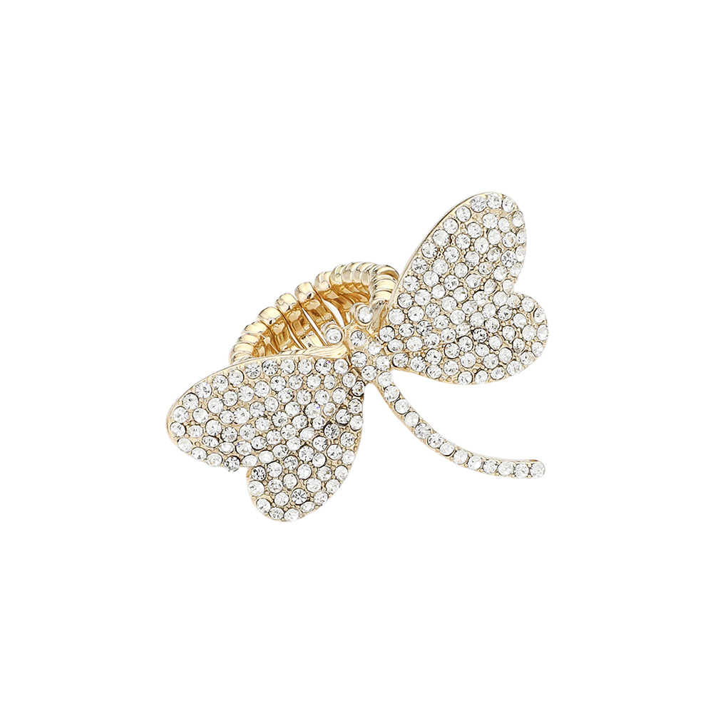 Rhinestone Paved Dragonfly Stretch Ring