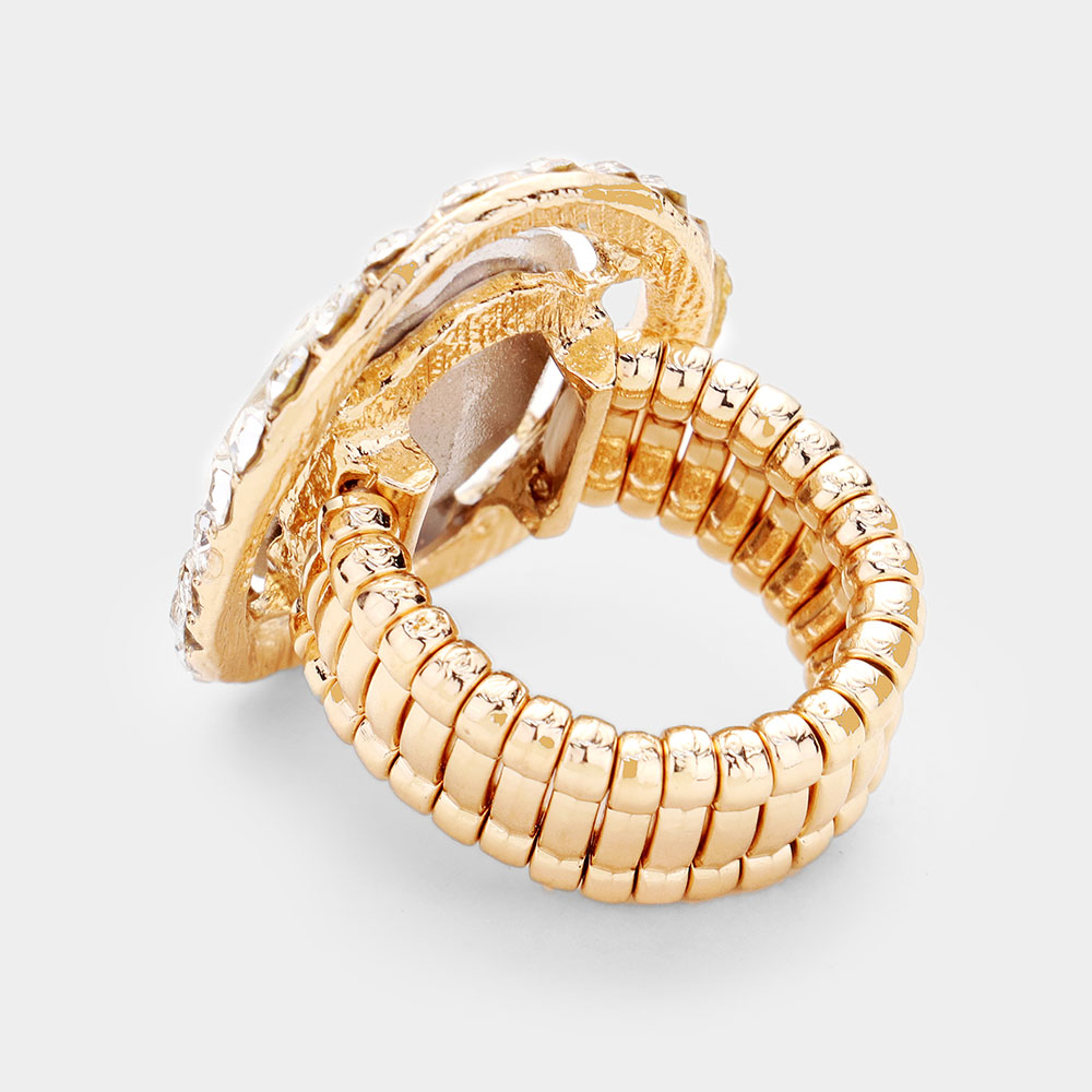 Rhinestone Trimmed Oval Cut Stretch Ring