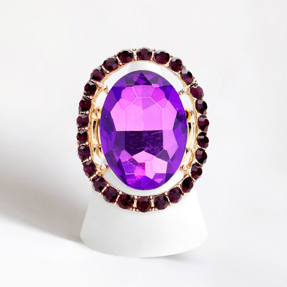 Rhinestone Trimmed Oval Cut Stretch Ring