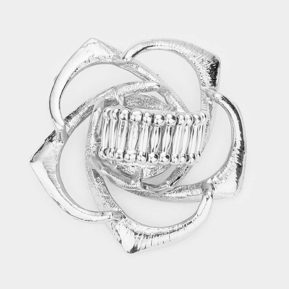 Round Stone Centered Rhinestone Flower Stretch Ring