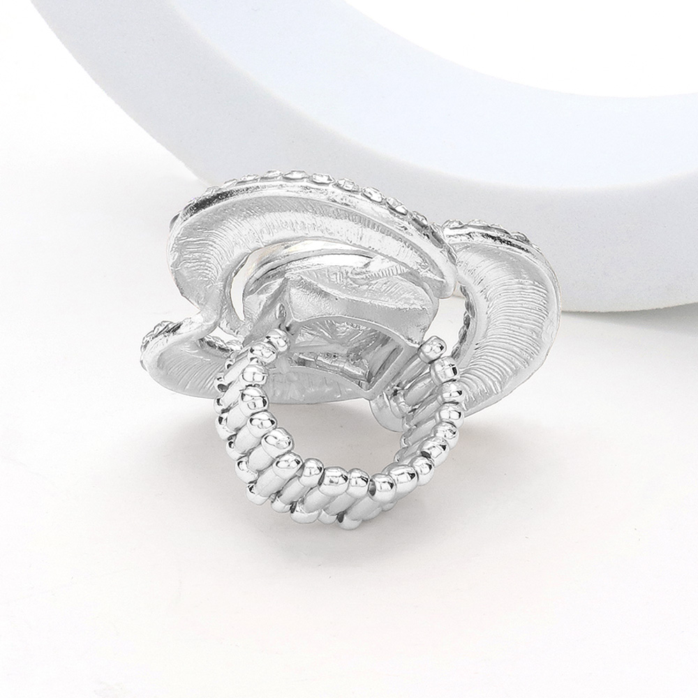Round Stone Centered Rhinestone Paved Flower Stretch Ring