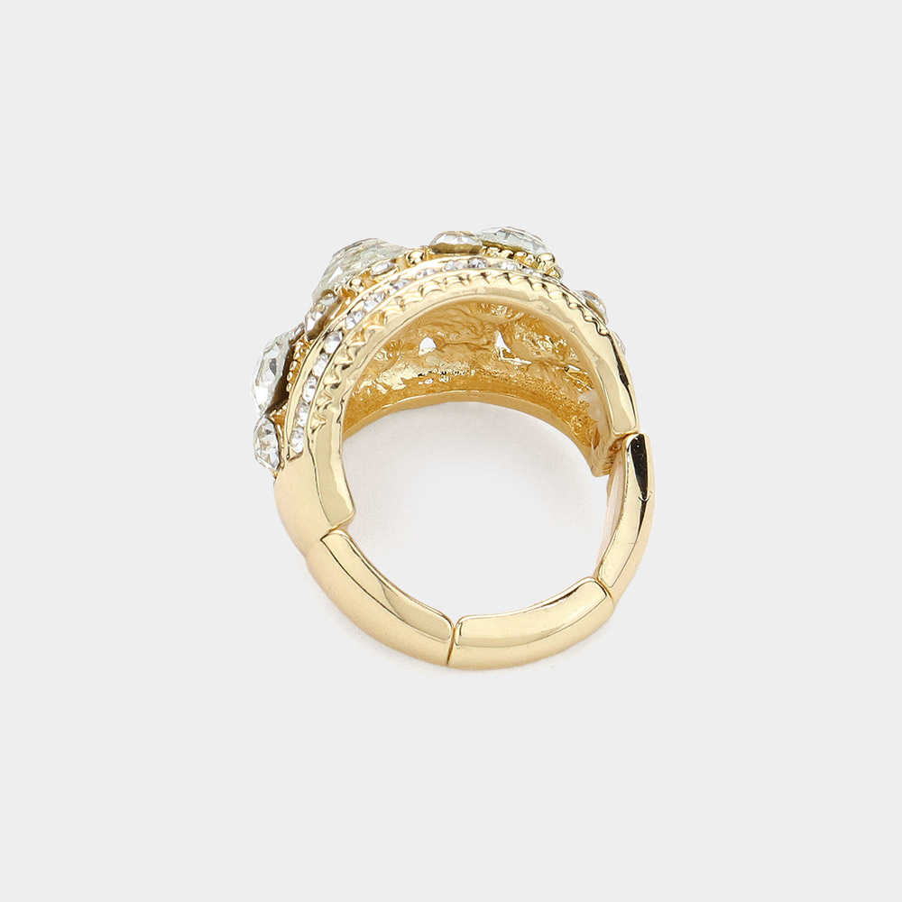 Pave Crystal Teardrop Floral Evening Clip On Earrings