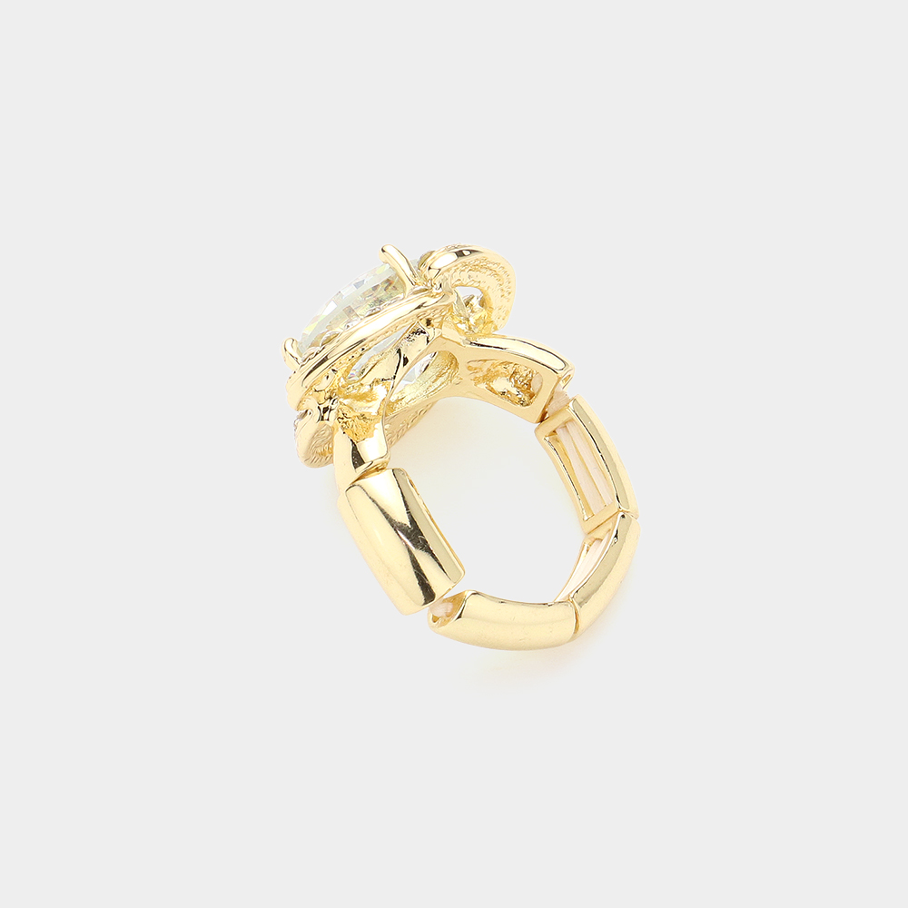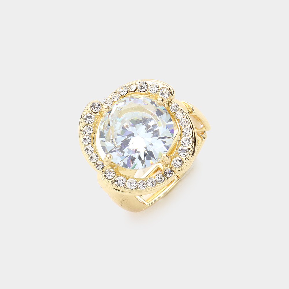Round Stone Pointed Rhinestone Paved Flower Stretch Ring