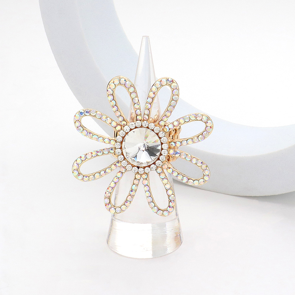 Round Stone Pointed Rhinestone Paved Flower Stretch Ring
