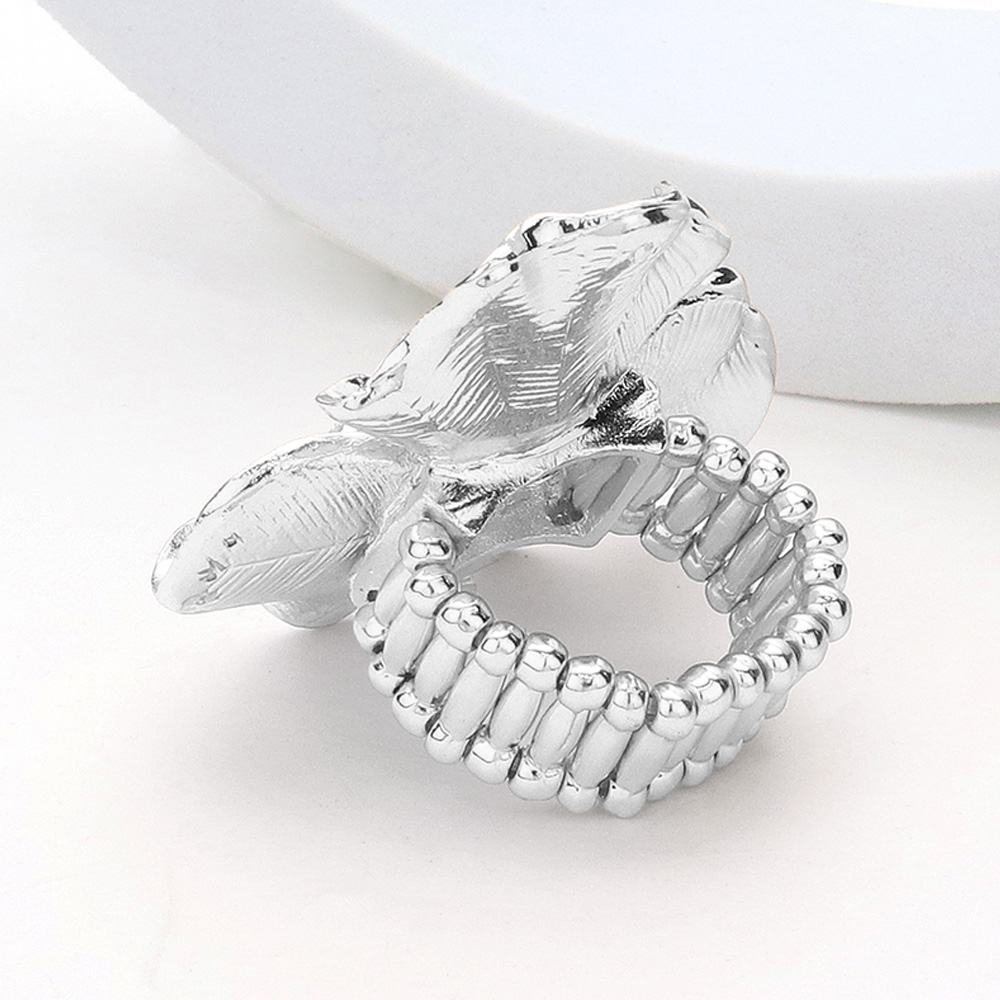 Round Stone Pointed Rhinestone Paved Flower Stretch Ring
