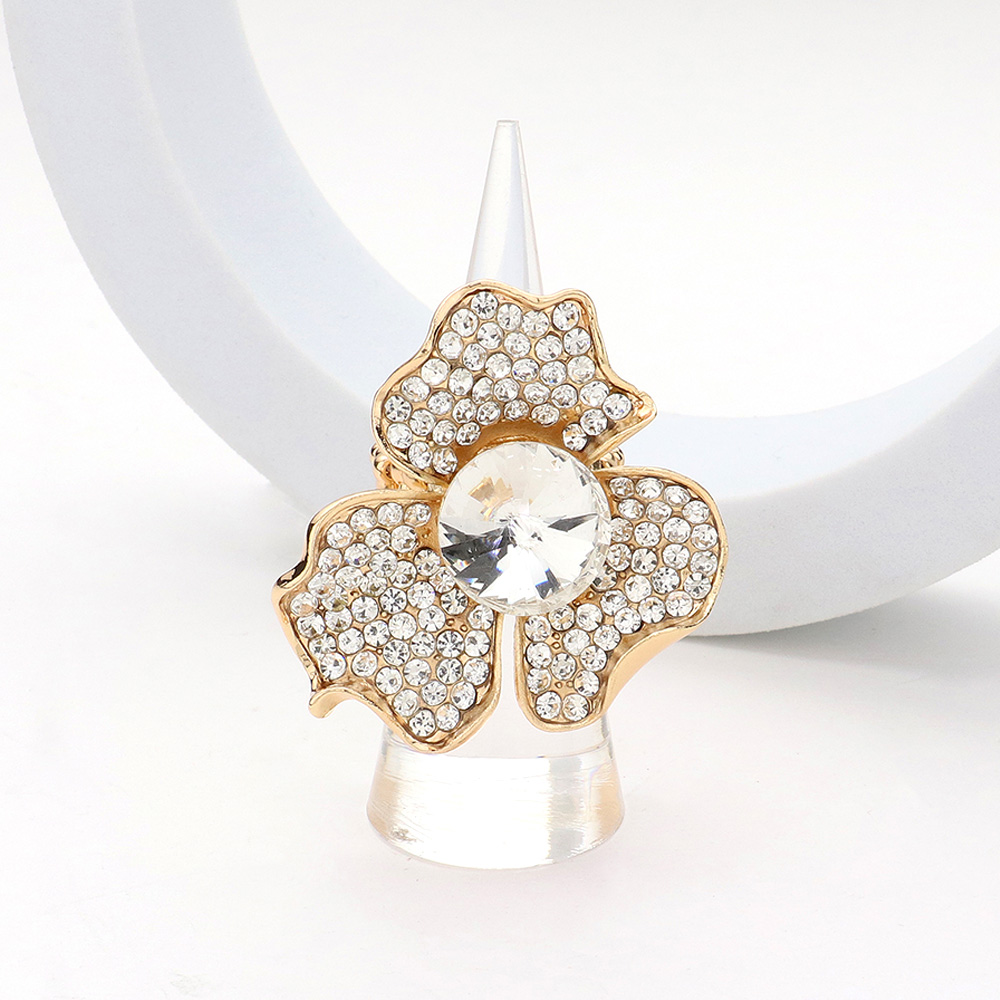 Round Stone Pointed Rhinestone Paved Flower Stretch Ring