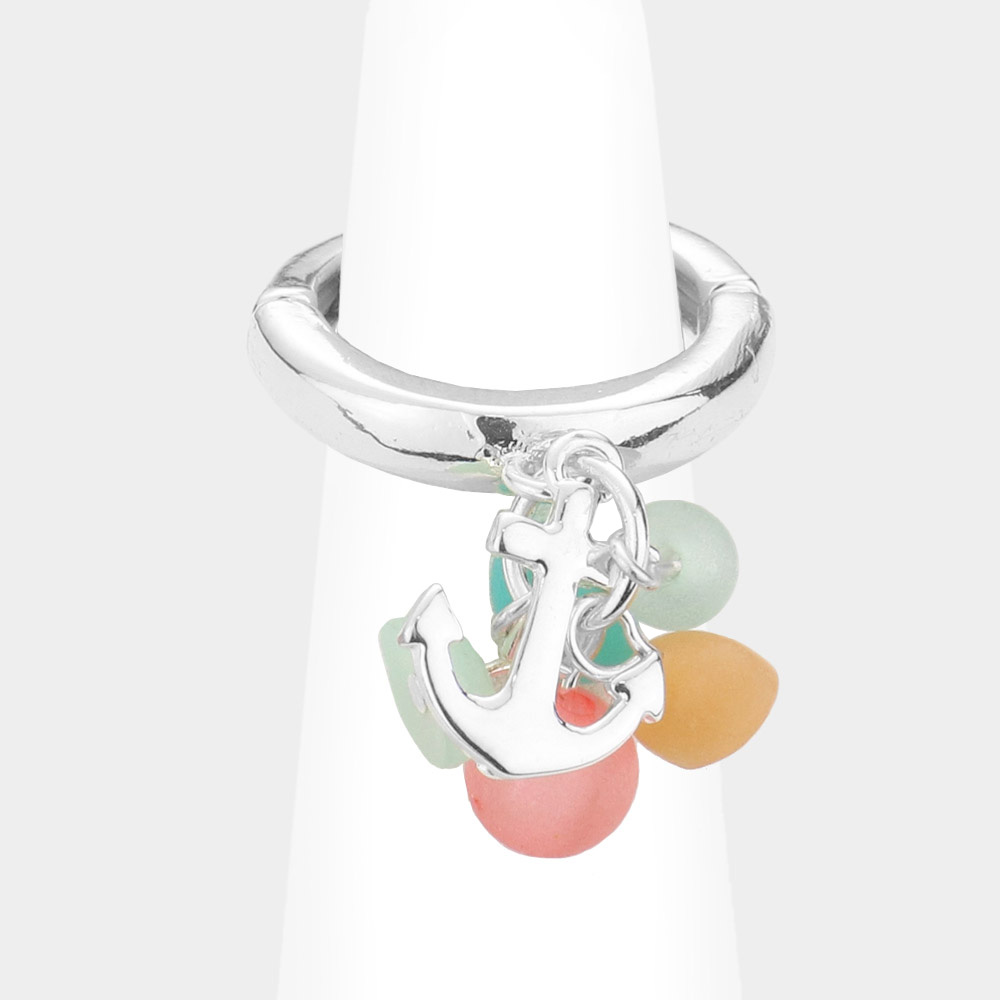 Sea Glass Metal Anchor Dangle Stretch Ring