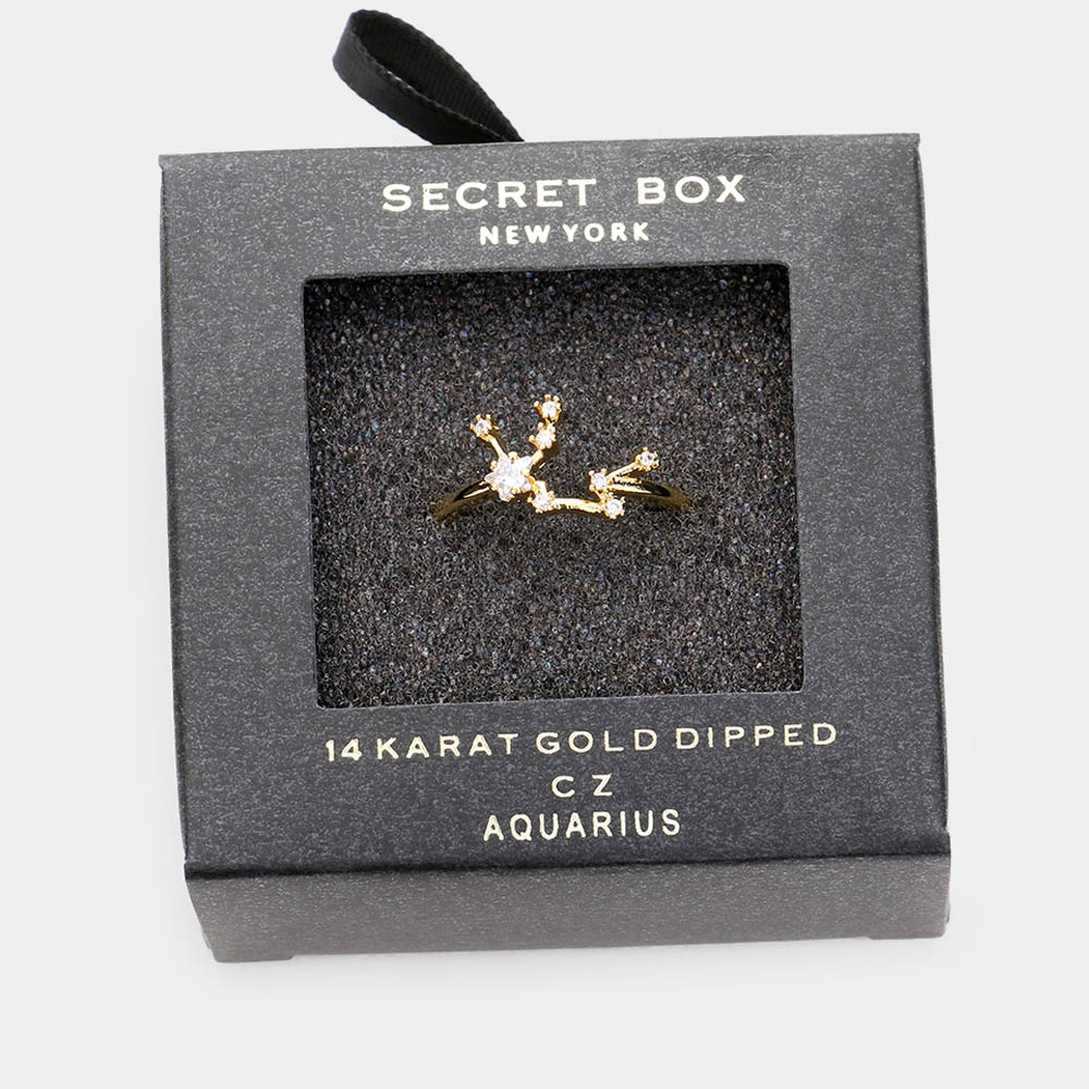 Secret Box _ 14k Gold Dipped CZ Zodiac Sign Aquarius Ring
