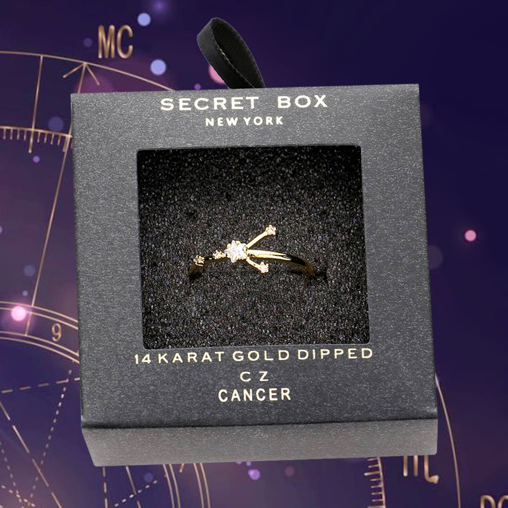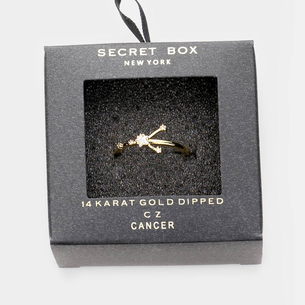 Secret Box _ 14k Gold Dipped CZ Zodiac Sign Cancer Ring