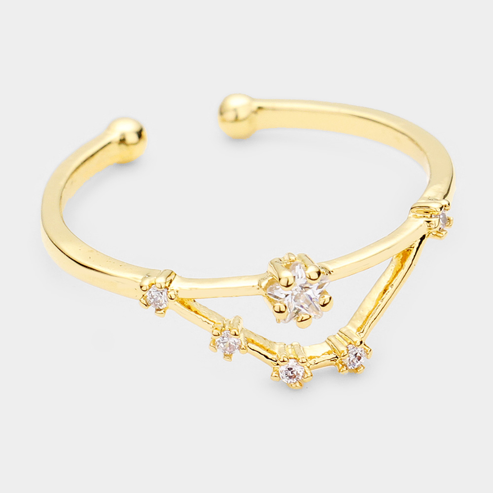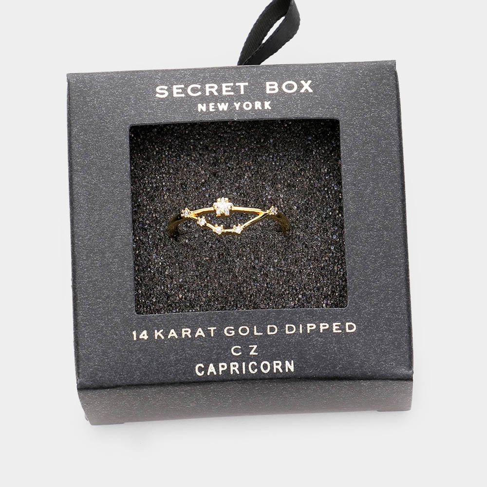 SECRET BOX _ 14K GOLD DIPPED CZ ZODIAC SIGN CAPRICORN SIGN RING