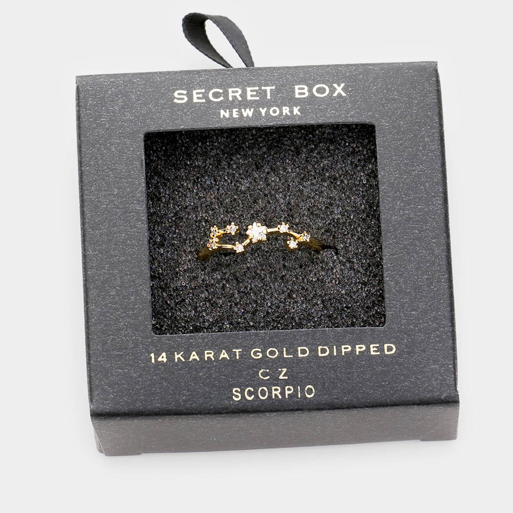 SECRET BOX _ 14K GOLD DIPPED CZ ZODIAC SIGN SCORPIO RING