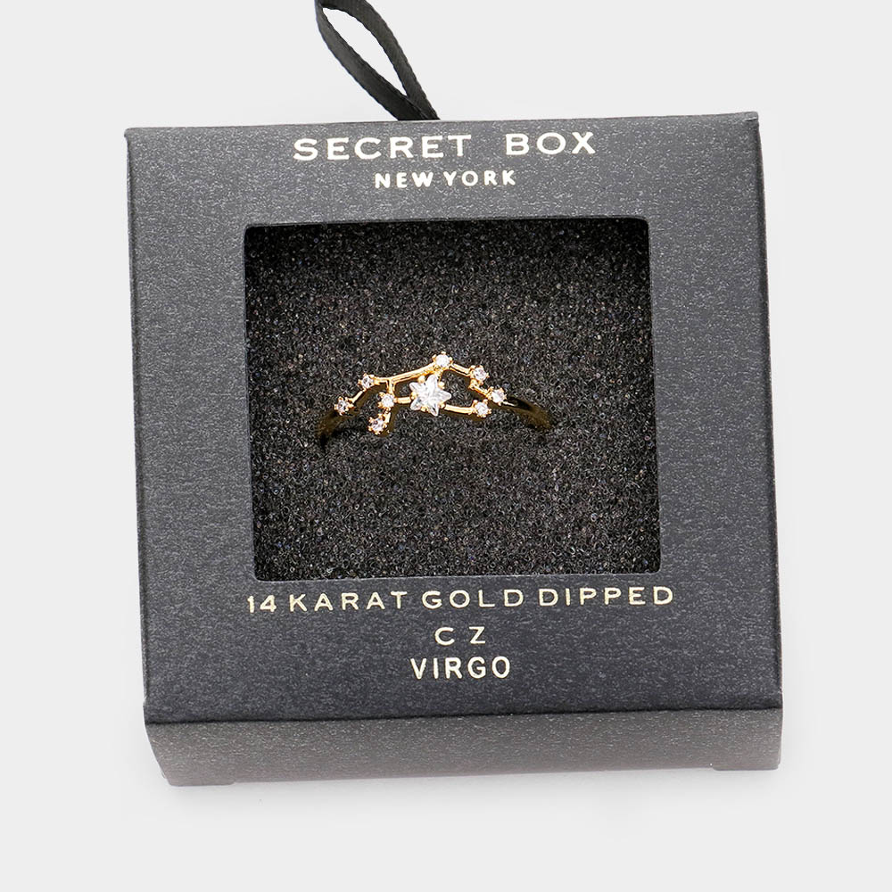 SECRET BOX _ 14K GOLD DIPPED CZ ZODIAC SIGN VIRGO RING