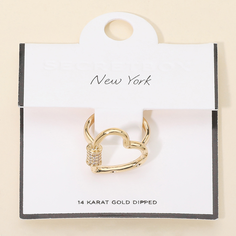 Details • Size : 0.75" H • Adjustable • Modern open ring featuring a heart-shaped design with a sparkling accent detail. The adjustable style offers a comfortable fit and easy wear, making it ideal for everyday styling, gifting, and boutique assortments focused on romantic, minimal, and trend-forward jewelry pieces. • Gold Dipped