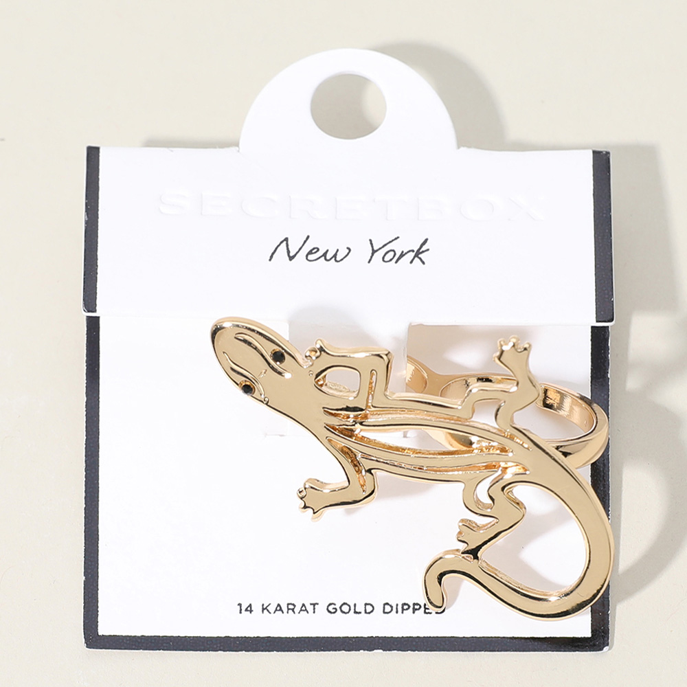 SECRET BOX_14K Gold Dipped Lizard Two Finger Ring