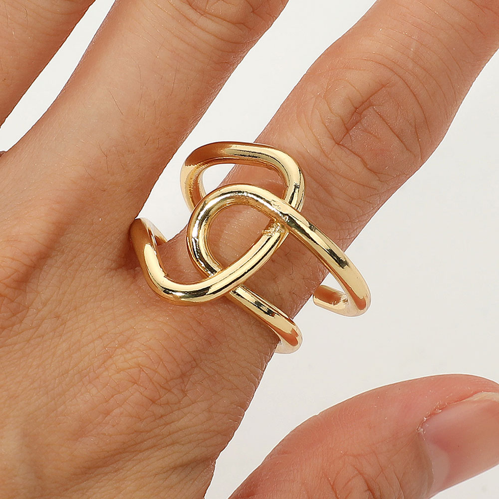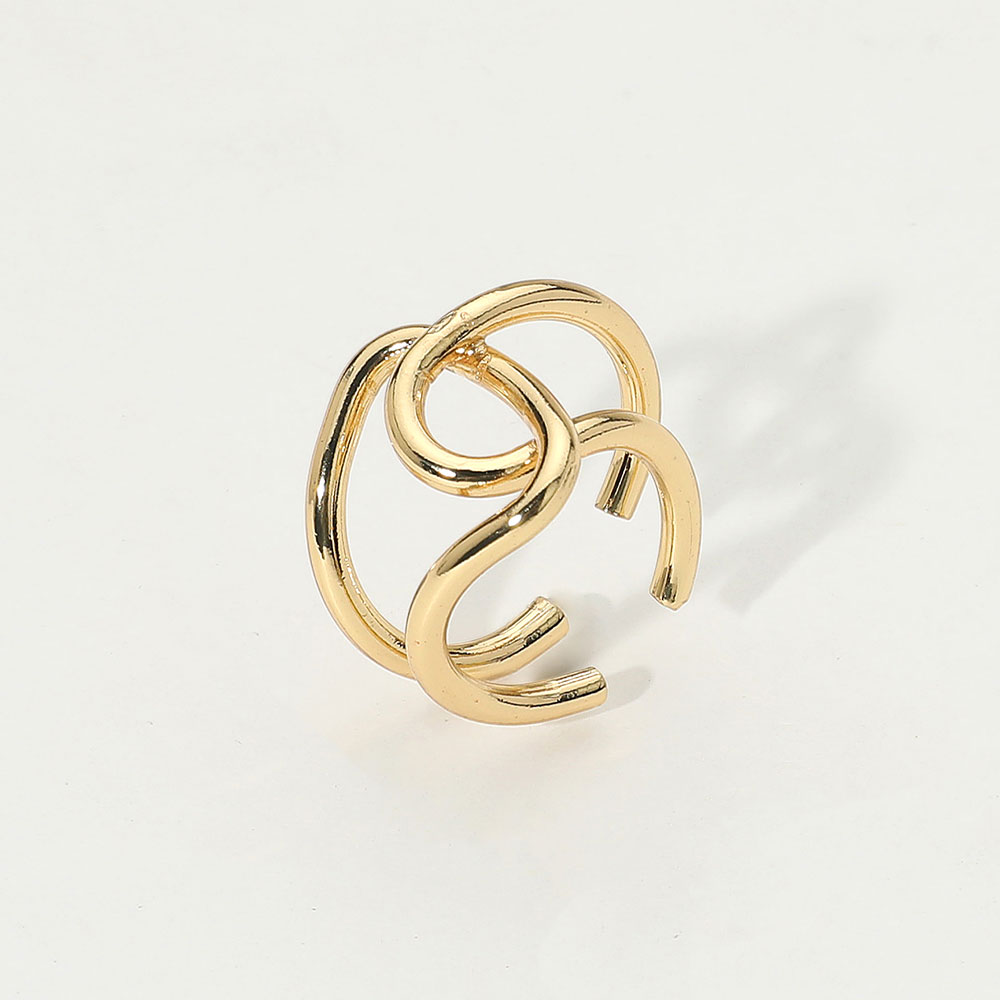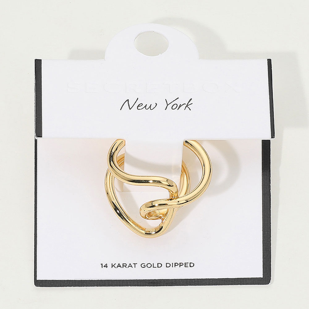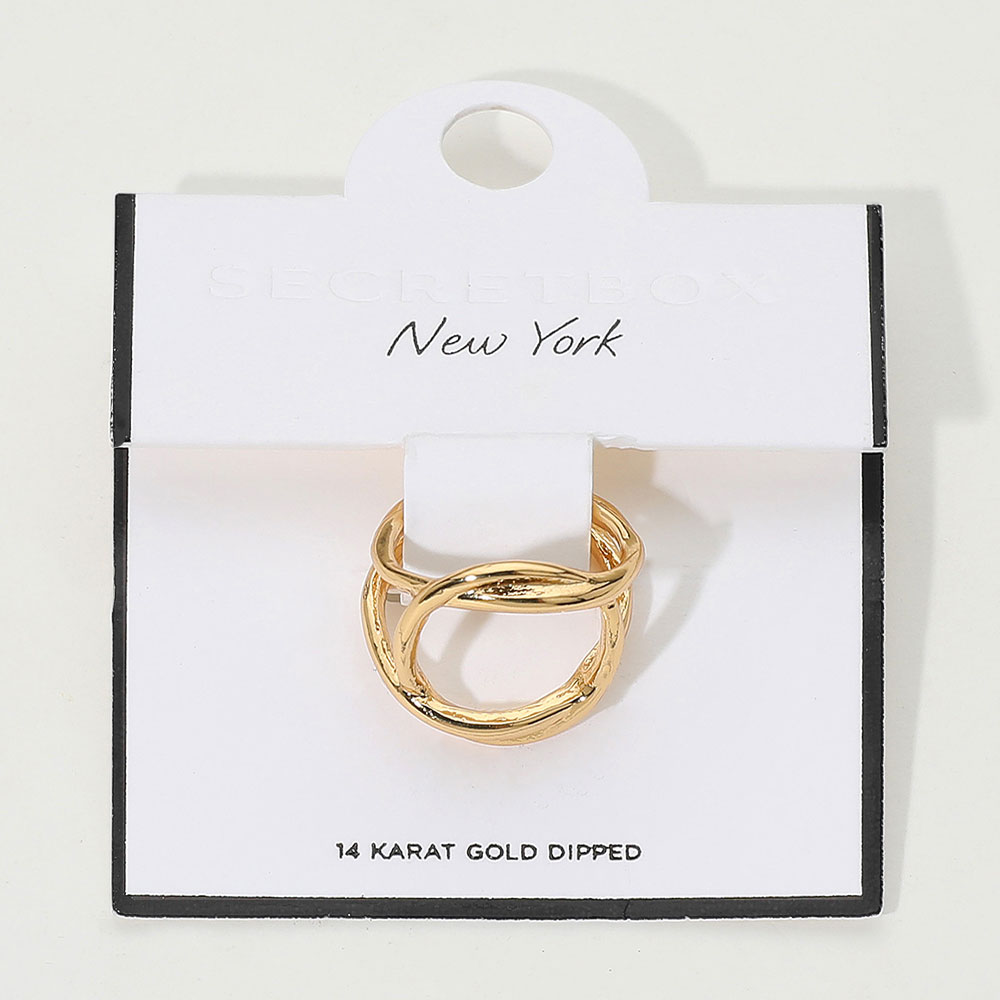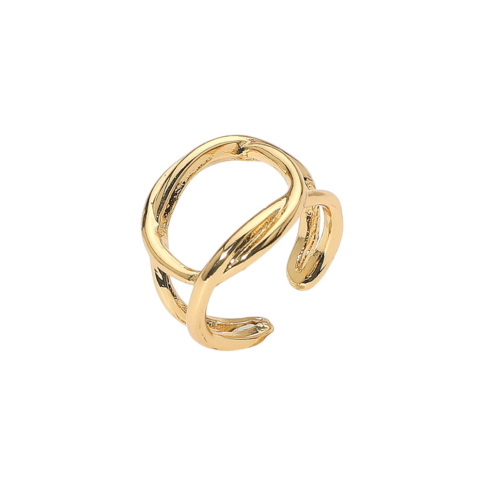 Details • Size : 0.75" H • Adjustable • Modern open ring with an elegant twisted band design. The adjustable fit ensures comfort and versatility, making it a perfect accessory for stacking or wearing solo with everyday or evening outfits. • Gold Dipped