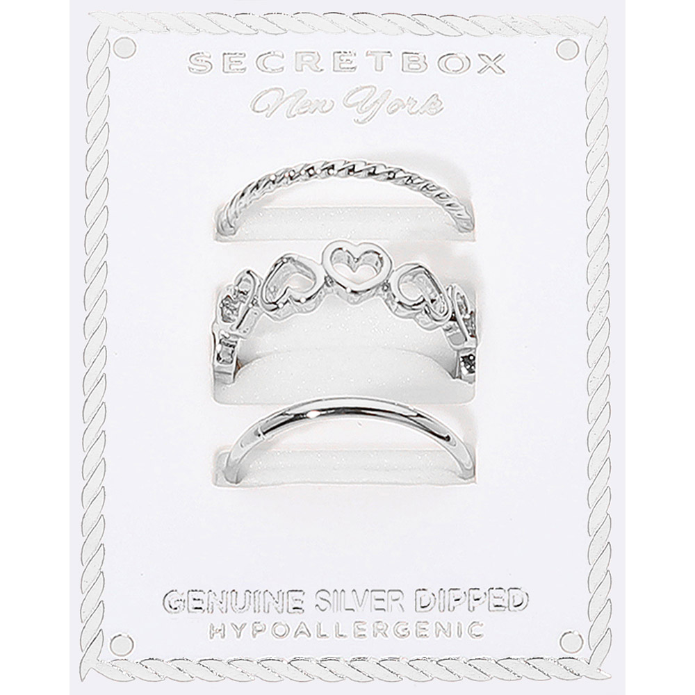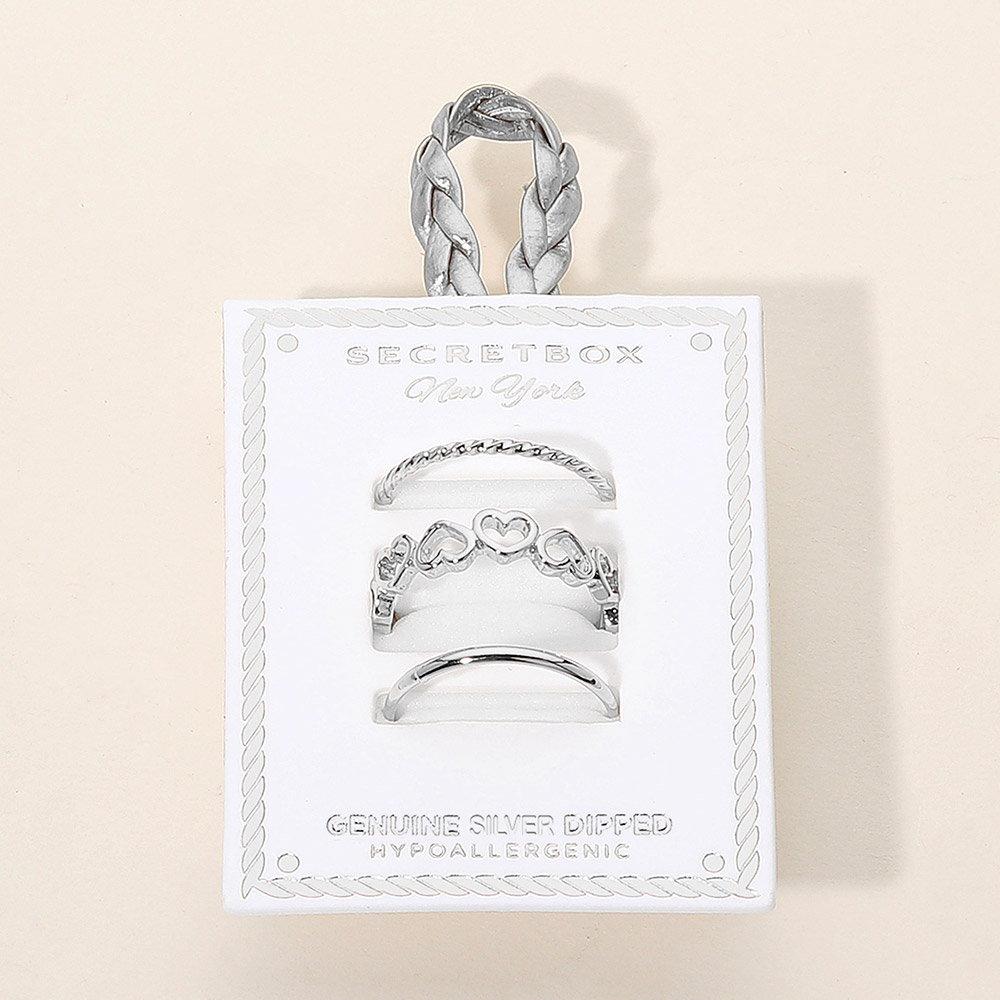 SECRET BOX_3PCS Genuine Silver Dipped Heart Band Stackable Fashion Ring Set SECRET BOX_3PCS Genuine Silver Dipped Heart Band Stackable Fashion Ring Set SECRET BOX_3PCS Genuine Silver Dipped Heart Band Stackable Fashion Ring Set