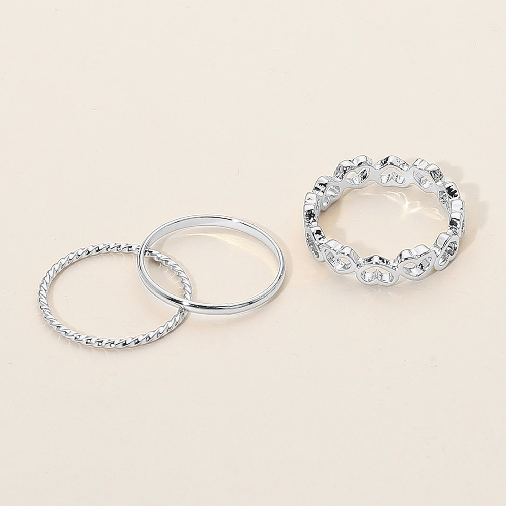 • Charming three-piece ring set featuring heart motifs and sleek bands. A playful blend of romance and simplicity, ideal for stacking or gifting with love.