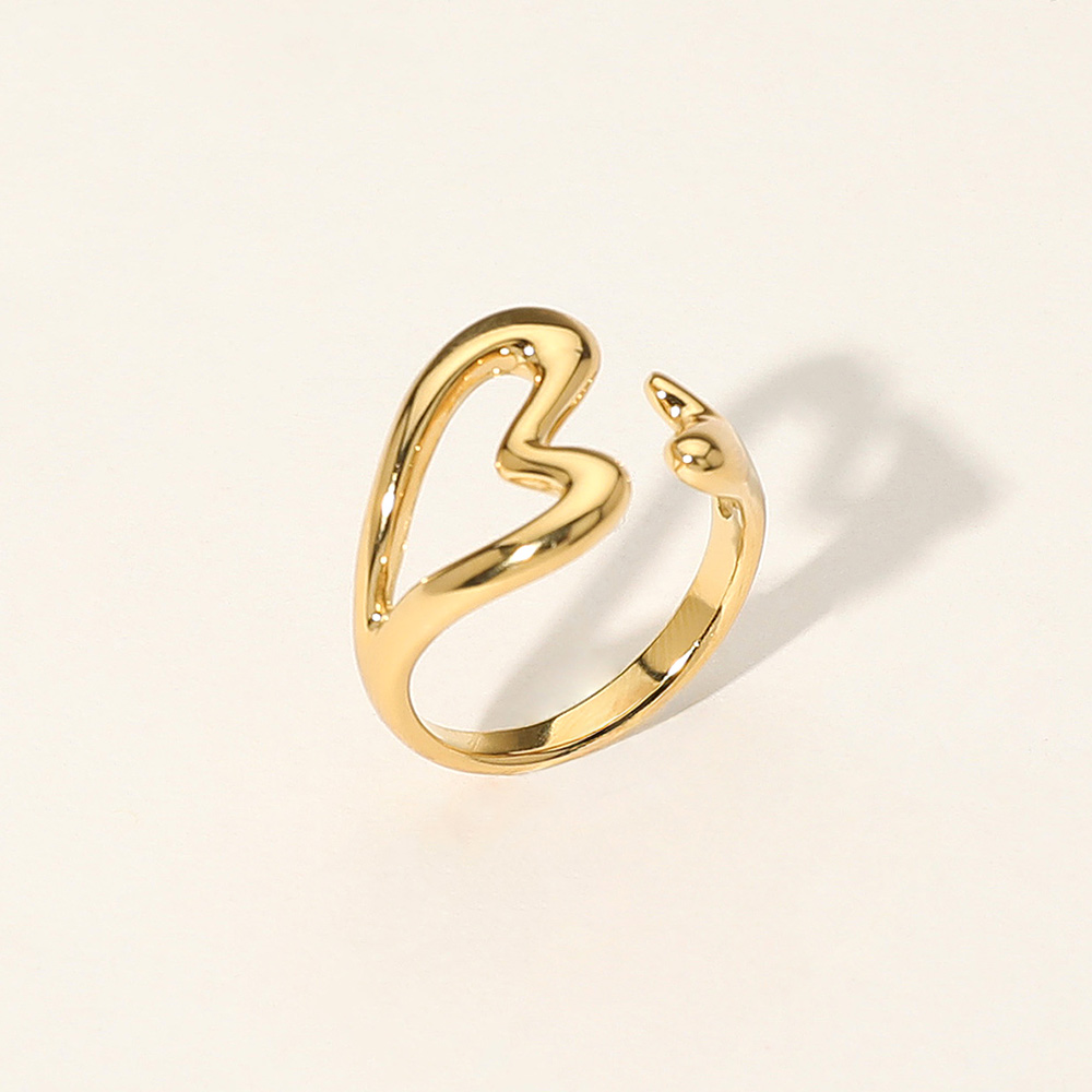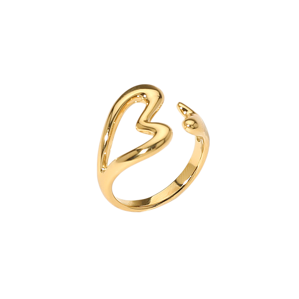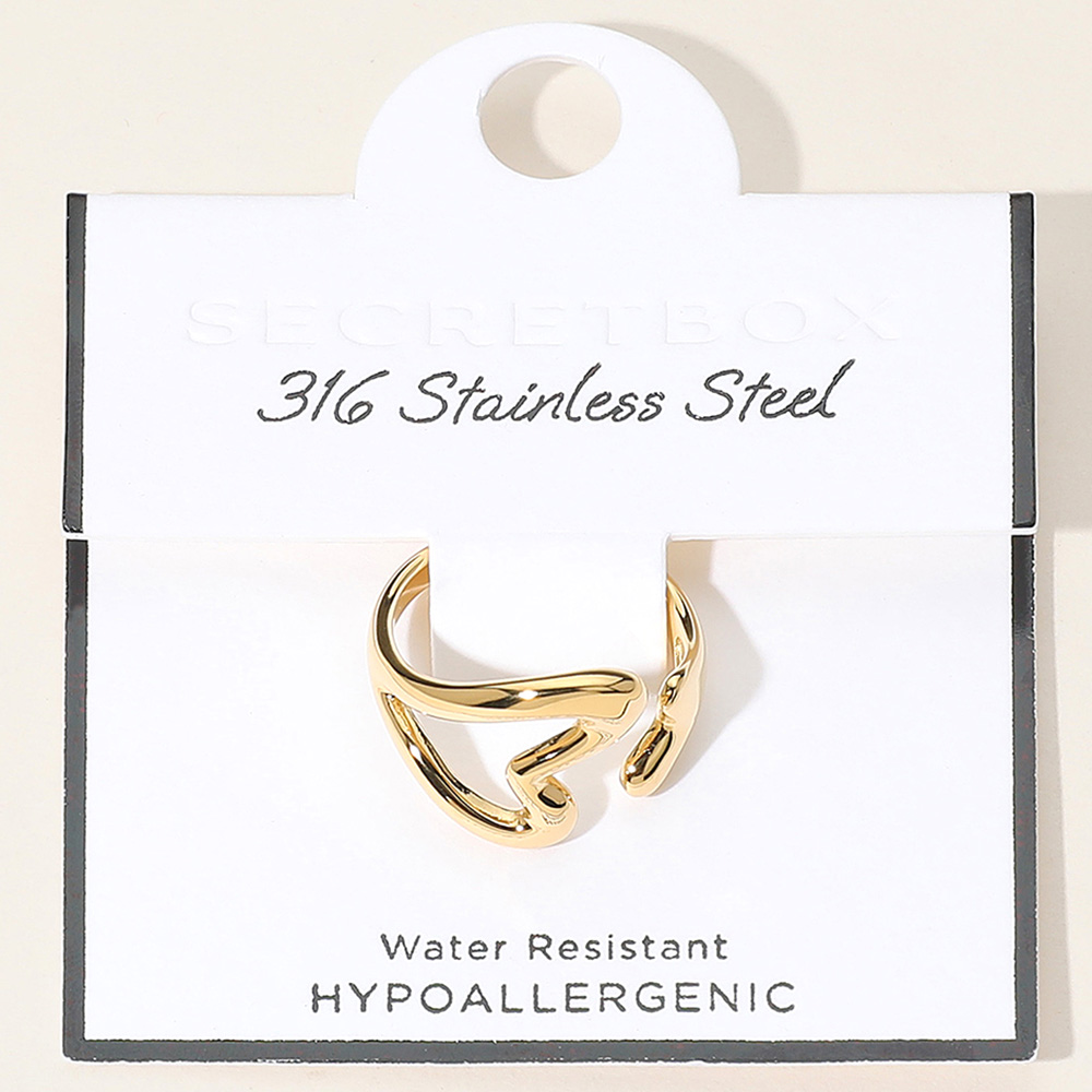 Details • Size : 0.6" H • Adjustable • Water Resistant • Delicate open heart ring with a sleek, minimalist outline. Adjustable fit for comfort and versatility. A romantic and stylish accessory perfect for everyday wear or gifting, adding charm to any outfit. • Hypoallergenic • Stainless Steel